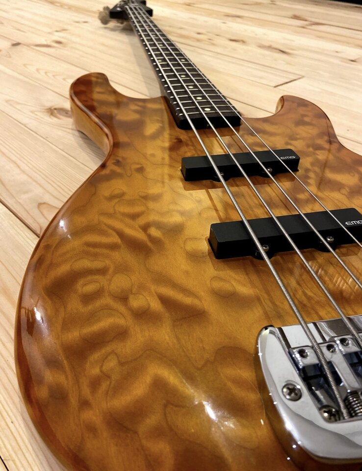 Der Bass hat einen warmen, fetten Ton, der aber sehr klar umrissen ist und sehr transparent und differenziert klingt. Da die PUs wenige mm weiter Richtung Hals sitzen, bleibt ein steriler, harter Ton aus und selbst der Steg-PU alleine klingt rund. Ein runder, durchsetzungsfähiger, klar umrissener Ton, bei dem nichts verwaschen klingt.