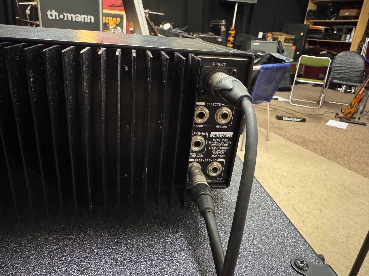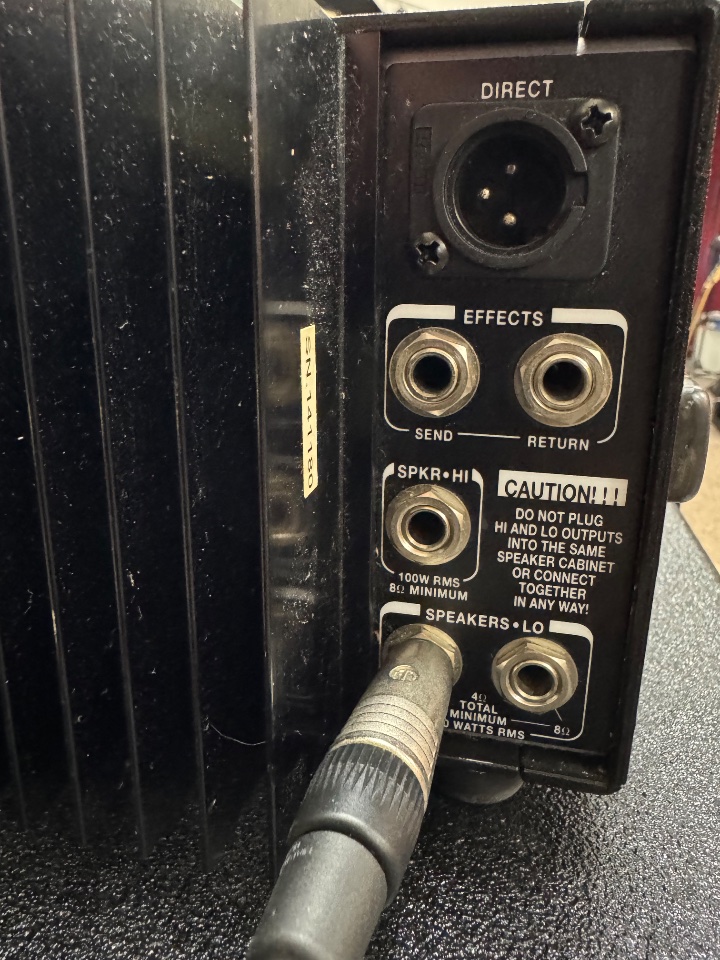 Der Amp funktioniert super. Ich hatte, bevor ich die Fotos geschossen hatte, noch alle Speaker-Ausgänge (300 W Lo @ 4 Ohm an meiner GK NEO, die ich gesondert anbiete, und den 100 W Hi @ 8 Ohm an einer Monitorbox) und den DI Out getestet, um bässten Gewissens schreiben zu können, dass alles fehlerfrei ist.