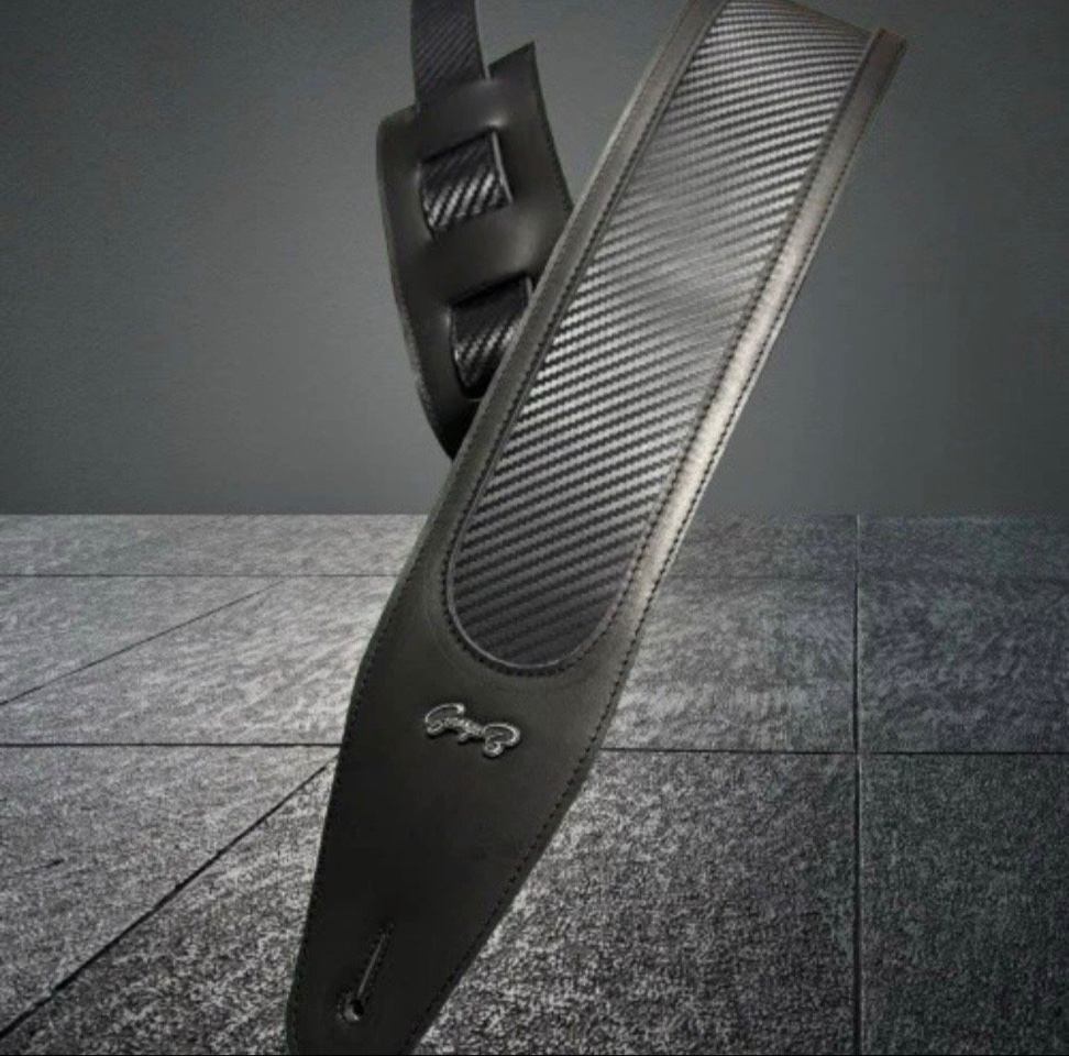 GBS Gitarrengurt, Leder mit Carbon, Standardlaenge 90-135cm verstellbar, Breite 6cm, wie neu, Neupreis EUR 79,00