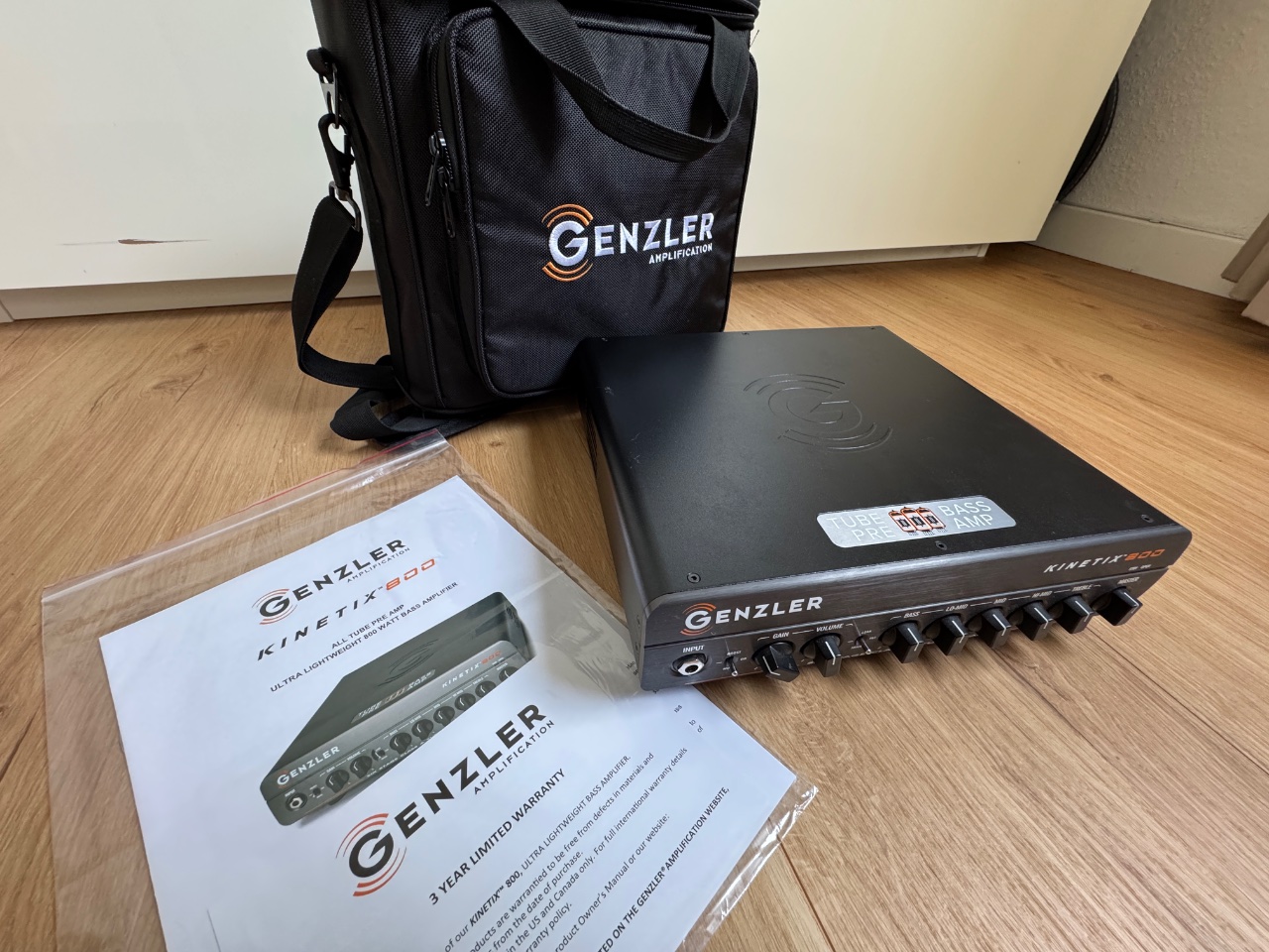 Verkaufe meinen Genzler Kinetix 800, ca 1,5 Jahre alt, OVP mit schickem und qualitativ hochwertigem Täschchen (nicht so ein dünnes Zeug). Habe ihn ein paar Mal live gespielt und sonst im Proberaum, der Zustand ist top und toller Sound mit 3 Röhren. Bei Bass Buddha gekauft, als er gerade auf den Markt kam und hierzulande noch nicht verfügbar war. Verkaufe ihn nur, weil ich jetzt meinen passenden Mesa 800 zu meinen Mesa-Boxen erhalten habe. Reviews findet ihr dazu sicherlich ausreichend im Netz und auch hier im Forum. NP: 1399,00 Euro.