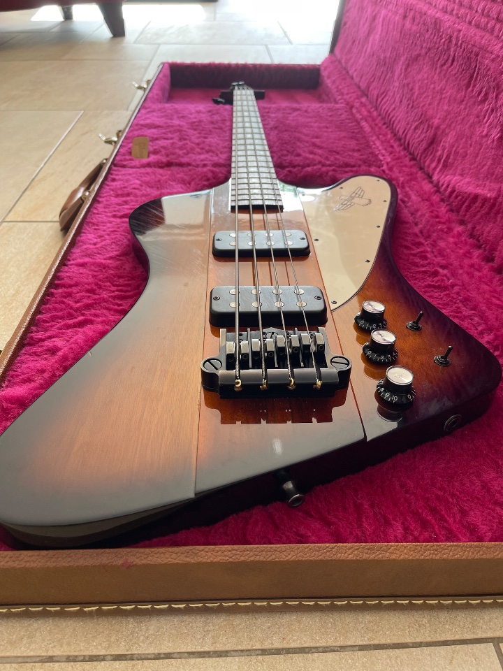 Ich muss meine Sammlung verkleinern und daher darf er an liebevolle Hände weitergegeben werden. Der Zustand ist, wie auf den Fotos zu sehen, sehr gut. Lediglich hauchfeine Plekspuren sind an der Front zu sehen. Aber auch nur, wenn man genau hinguckt und den richtigen Winkel hat. Sicherlich lassen sich diese aber entfernen. Ich habe den Bass nur für Musikaufnahmen im Tonstudio verwendet. Er hat nie eine Bühne gesehen.