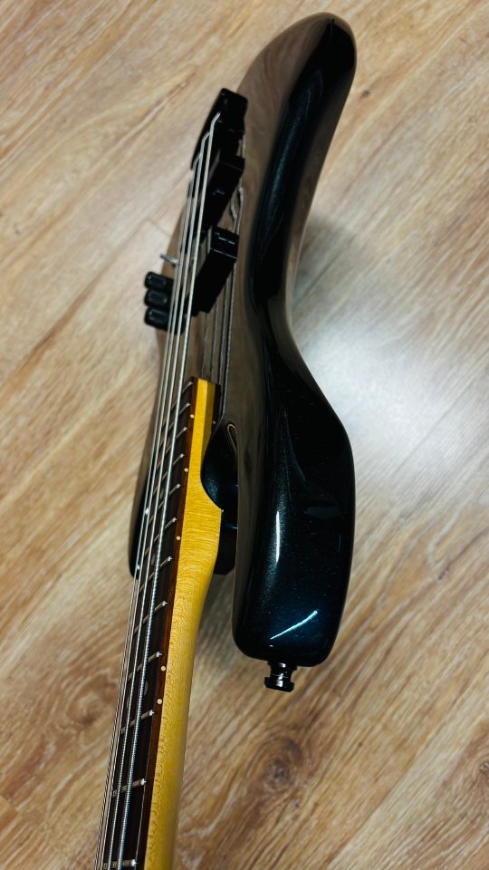 Mit seinen 3,8 kg kann der Bass als leicht bezeichnet werden. Der Hals ist supergrade mit JB-Abmessungen, hat aber ein etwas runderes Halsprofil.