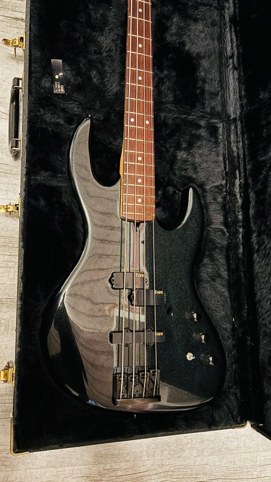 Dieser Bass aus den frühen 1990er Jahren wird in seinem originalen Tolex-Koffer geliefert.