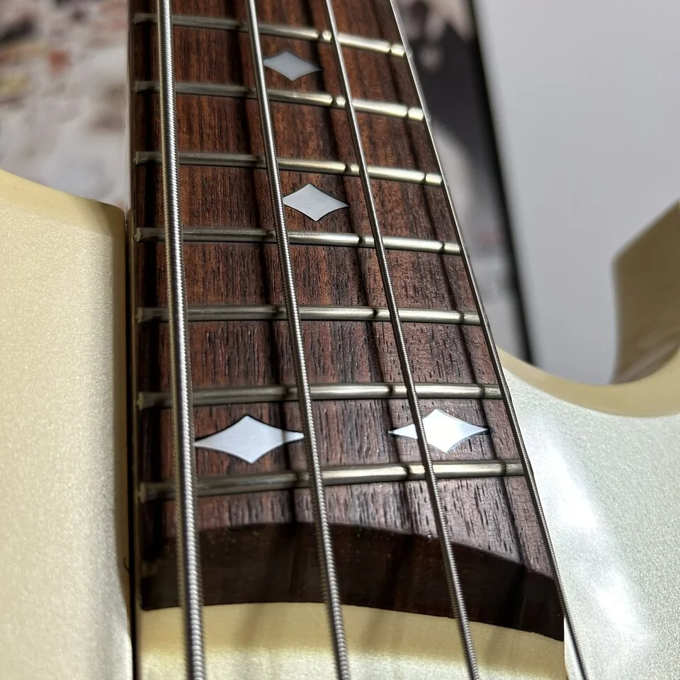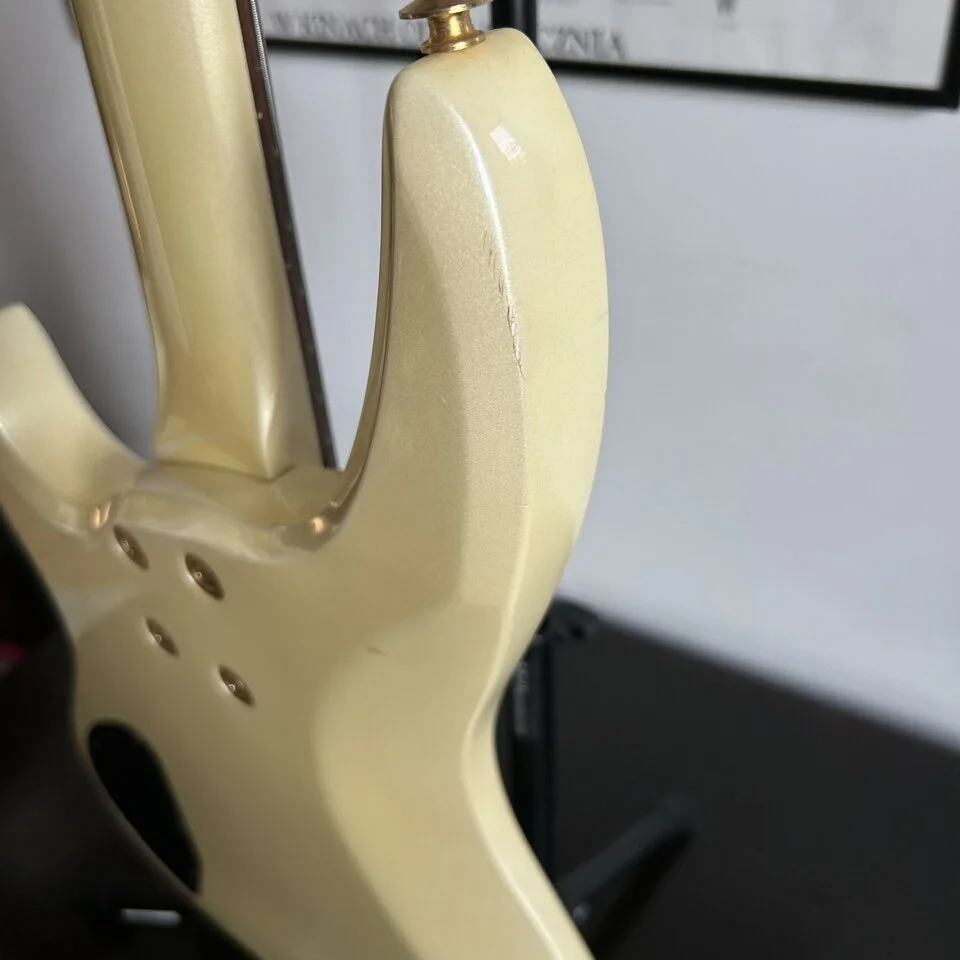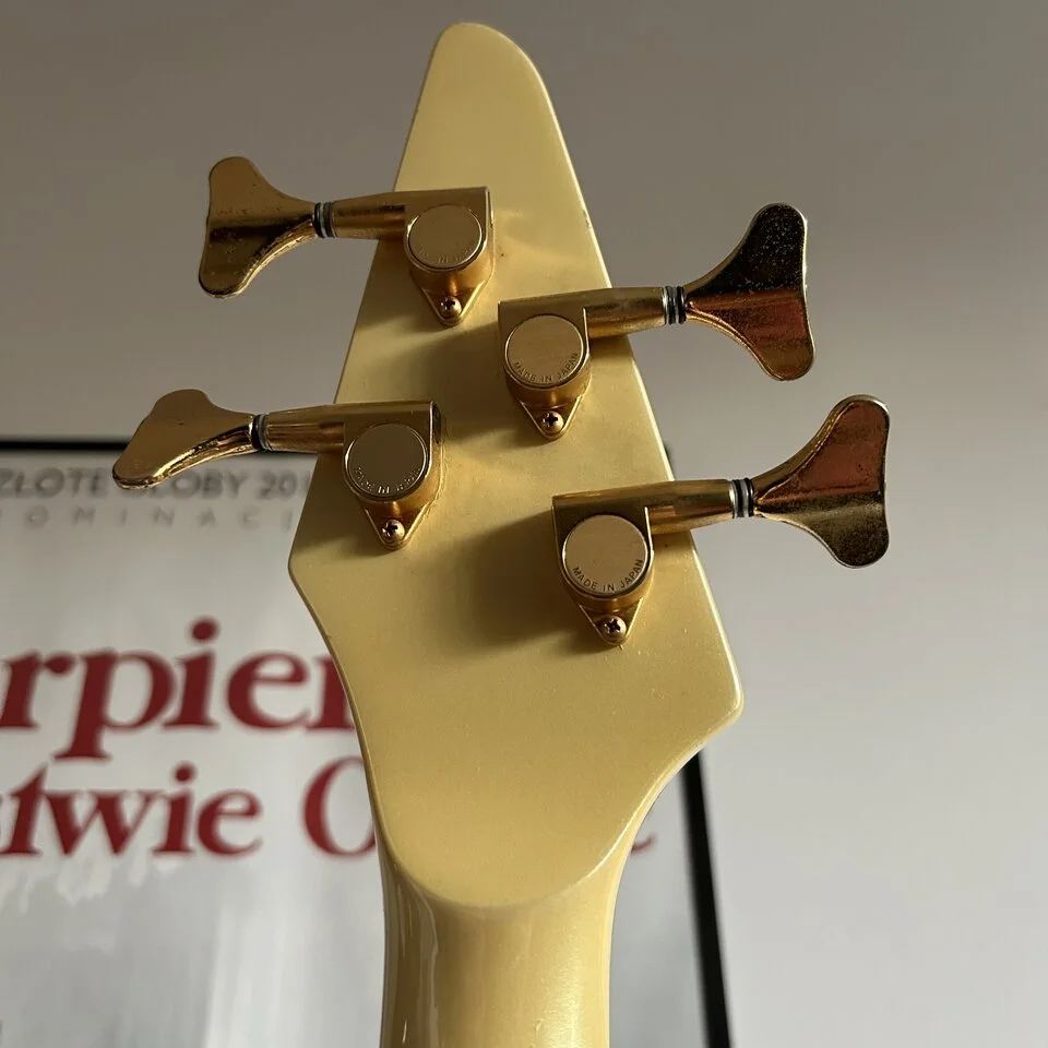 Although Greco is best known for its excellent copies, the Japanese have released many of their own designs into the world. The BOB-65 is one of the more interesting examples. Dynamic shape, elegant white (nowadays rather cream) paintwork, gold hardware, striking trapezoidal markers.... It can appeal, and it certainly stands out.