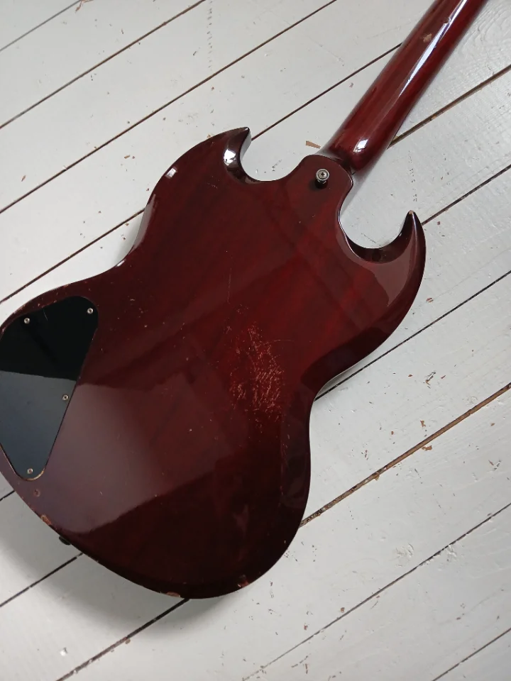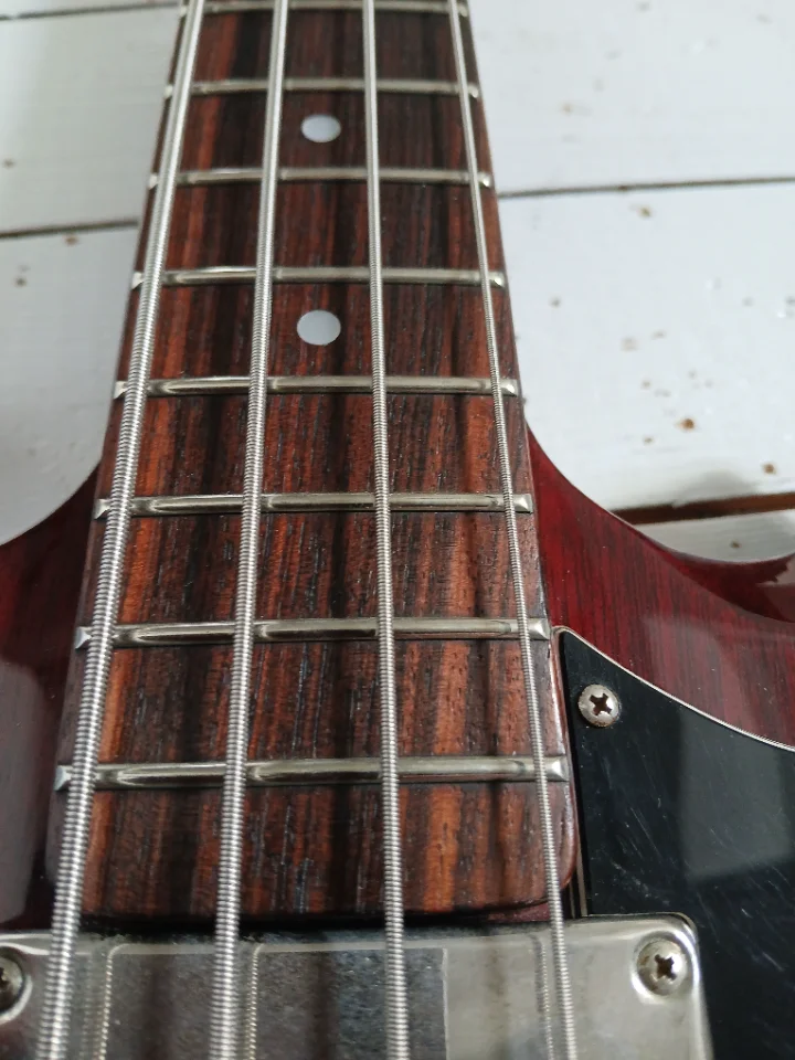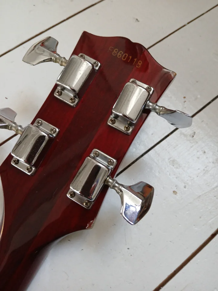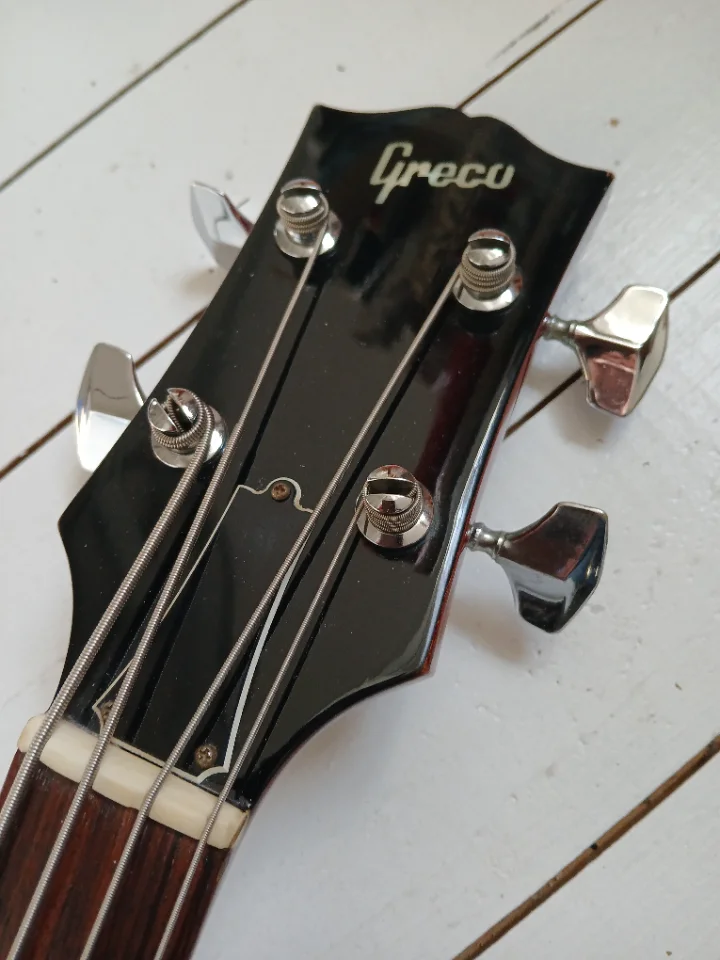Biete einen aus Japan importierten Greco an. Wollte mal "was anderes" ausprobieren und bin doch wieder bei den Precis gelandet. Ein schönes Instrument, zu schade zum Rumstehen. Mahagonikorpus und Hals, Rosewoodgriffbrett, Longscale, Set Neck. Beide PUs original, müssten Maxons sein. SN könnte auf 1981 hinweisen. Bridgecover fehlt leider. Für den Versand würde ich ein sehr einfaches, rustikales Case spendieren. Es gibt ein paar Kampfspuren am Body, s. Fotos. Tauschangebote willkommen, Beuteschema: japanische Precis aus den 70ern-90ern.