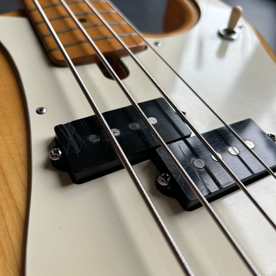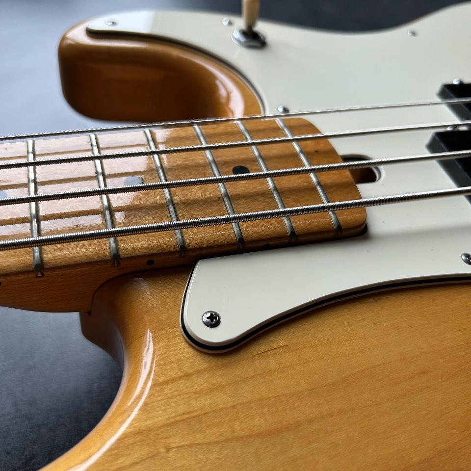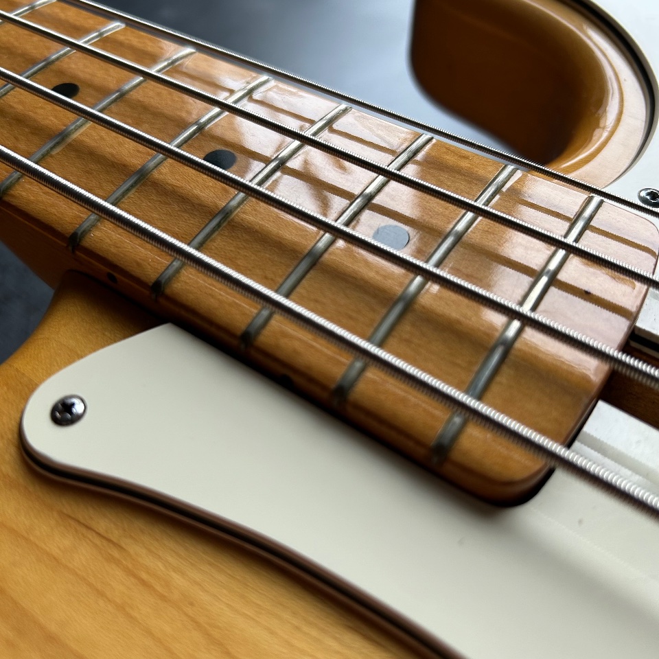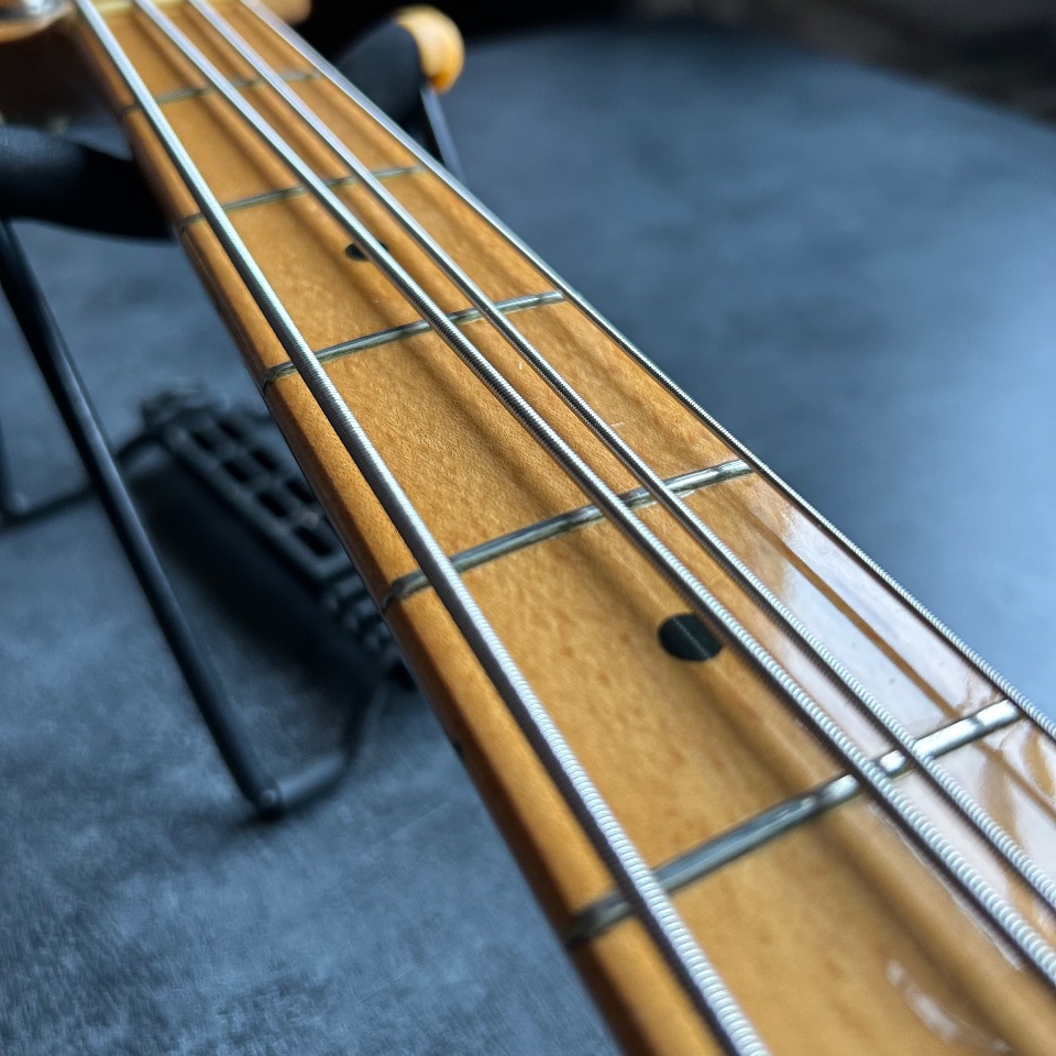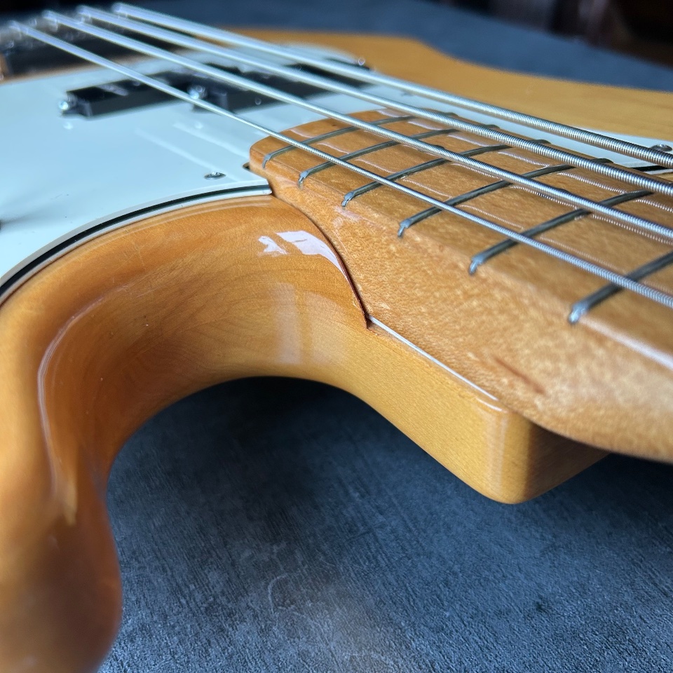 Thirdly, this Precison has a neck… typical of a Jazz Bass. 39mm at the nut, a slim profile, and an old-school 7.5mm radius. It's great if you like the look of a natural PB with maple fingerboard, but you're turned off by the feeling of a baseball bat in your hand.