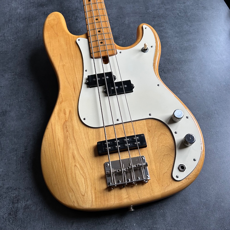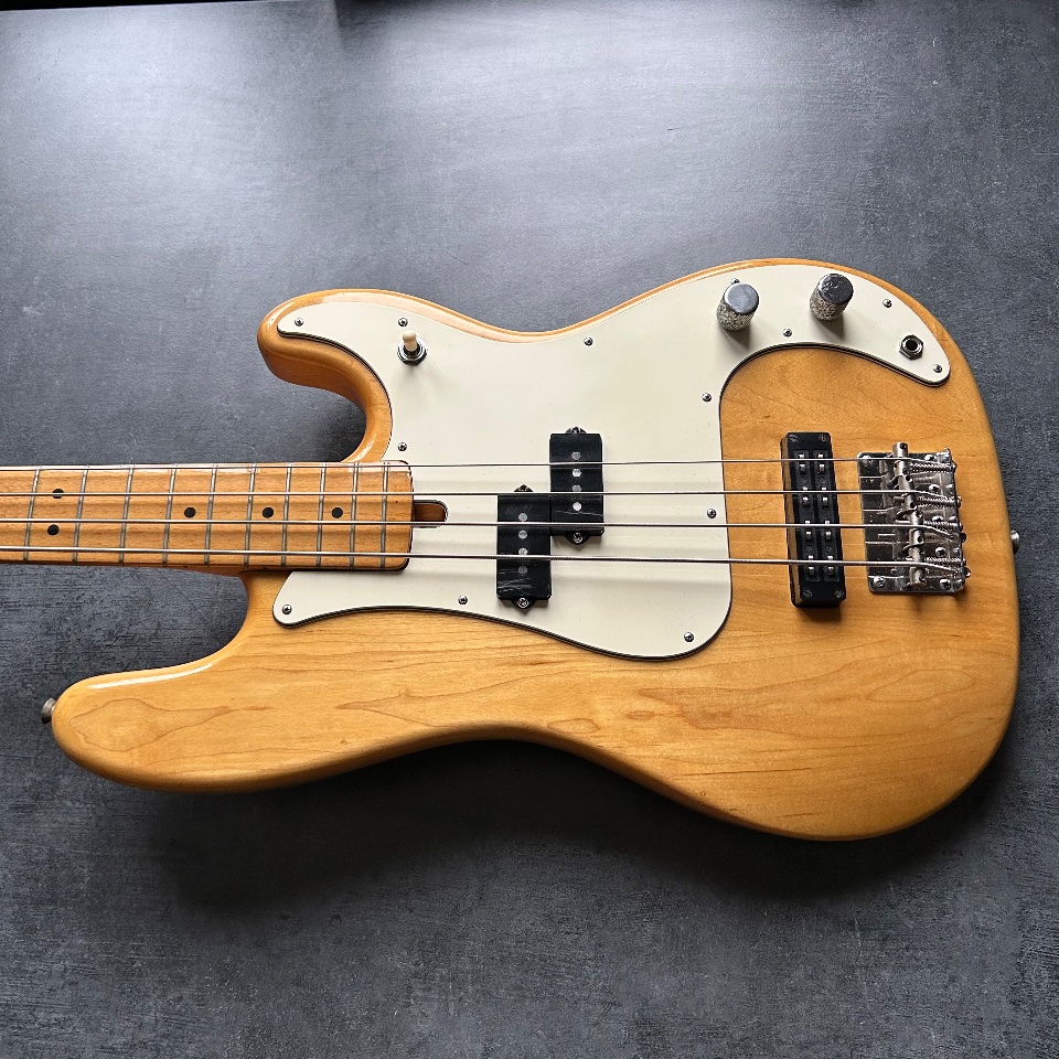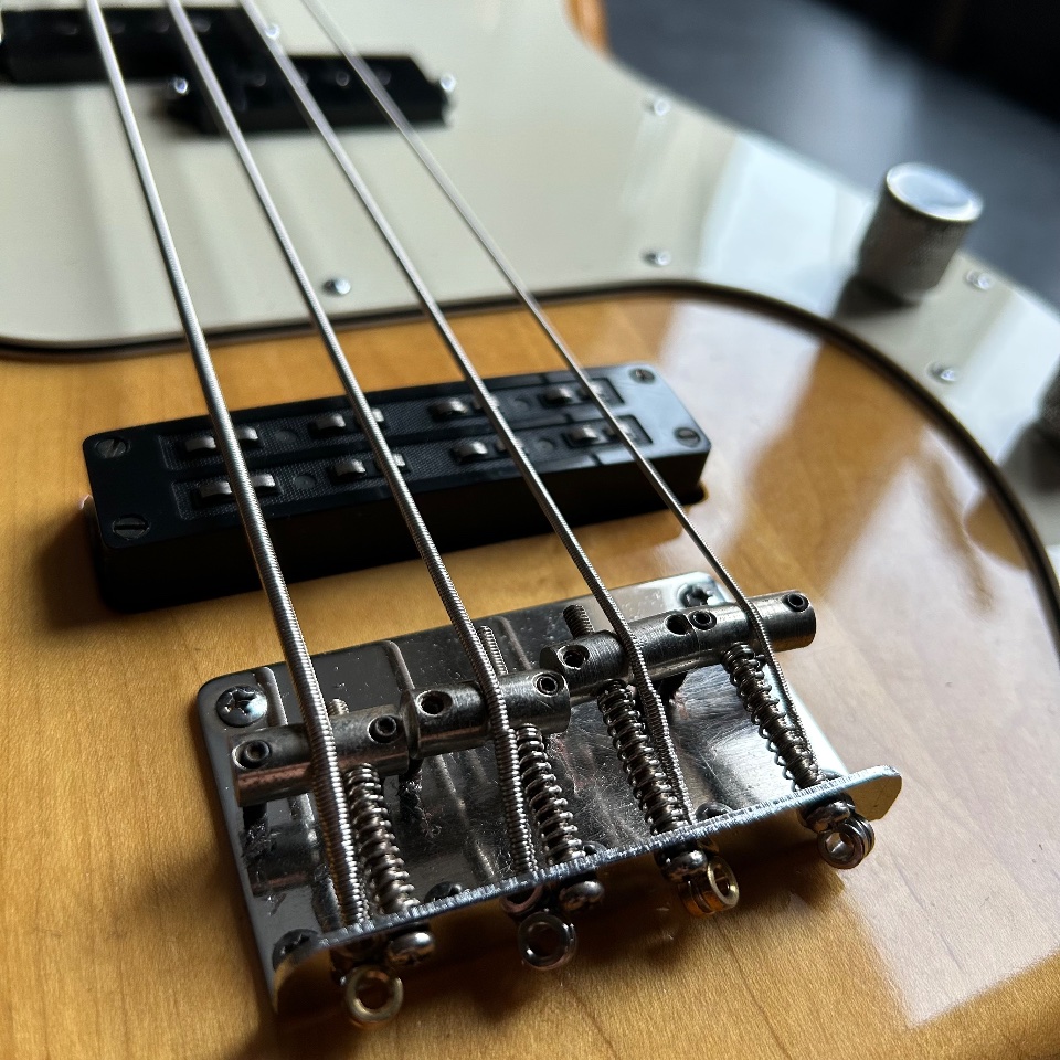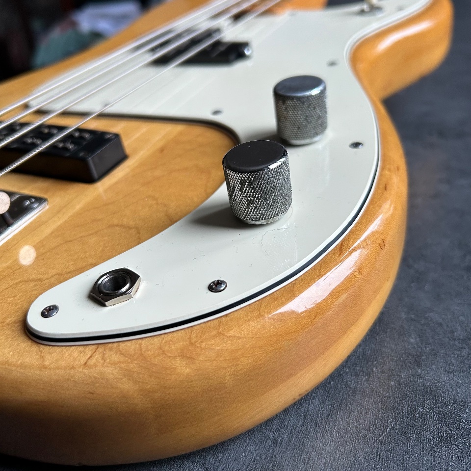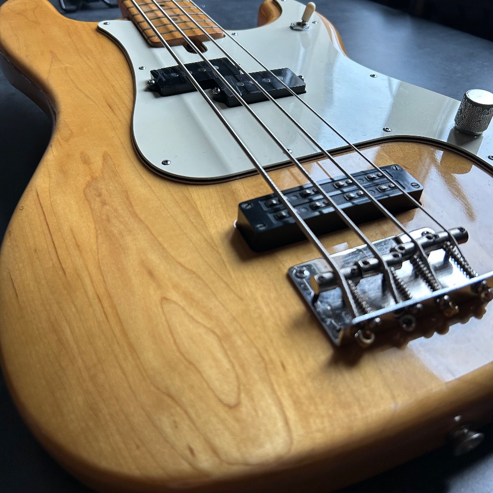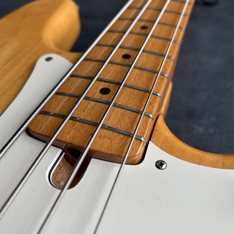Thirdly, this Precison has a neck… typical of a Jazz Bass. 39mm at the nut, a slim profile, and an old-school 7.5mm radius. It's great if you like the look of a natural PB with maple fingerboard, but you're turned off by the feeling of a baseball bat in your hand.