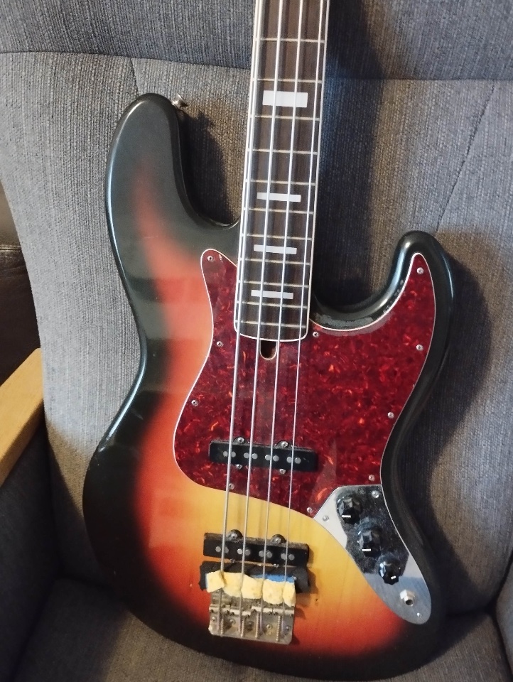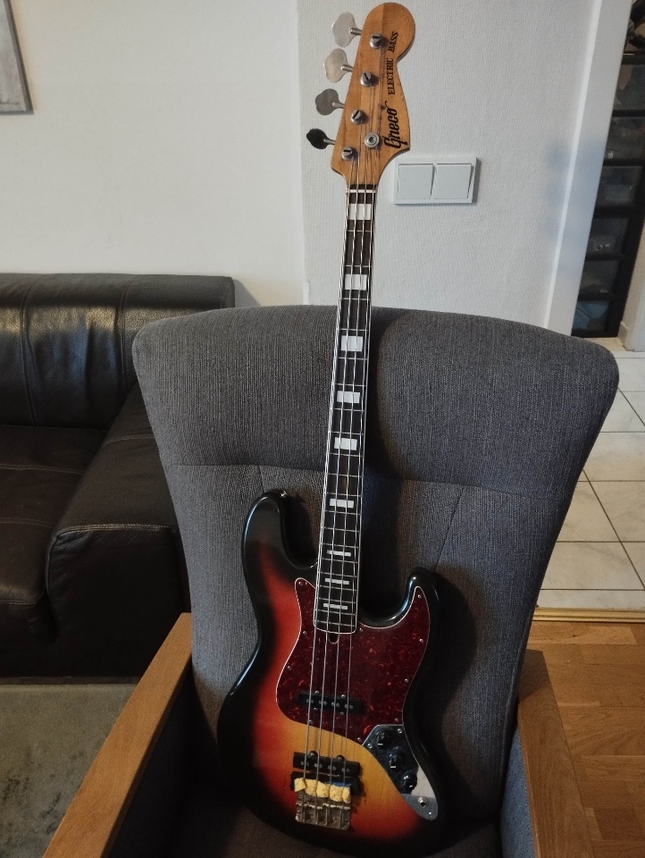 1) Greco Jazz Bass - Made In Japan. Alles Orignal, nur die Potis wurden vor mal erneuert (CTS). 4,4 kg. Der Bass stammt aus den 70ern, die PickUps haben aber eine 60er Position.