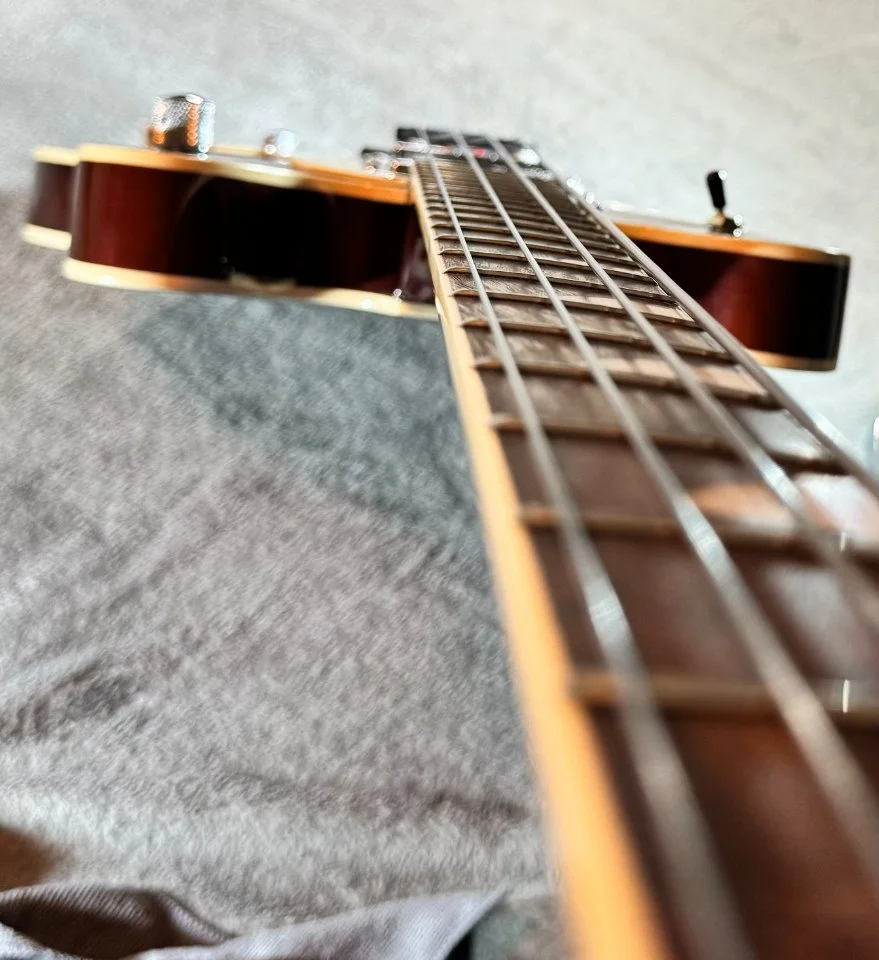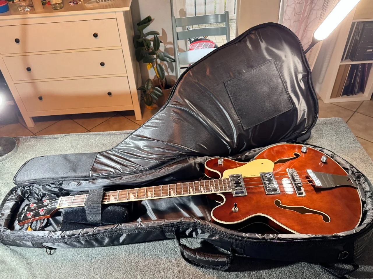 um den Vintagesound zusätzlich zu betonen. Der Bass wiegt 3,5 kg und kommt mit einem Rockbag Hollowbody Bass Gigbag.