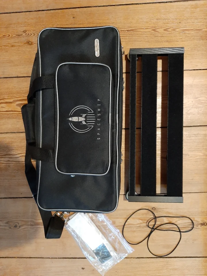 Das Effektboard kommt mit der dazugehörigen Tasche, 3 Gummis zur Netzteilbefestigung und ganz viel Klettband zum befestigen der Pedale.