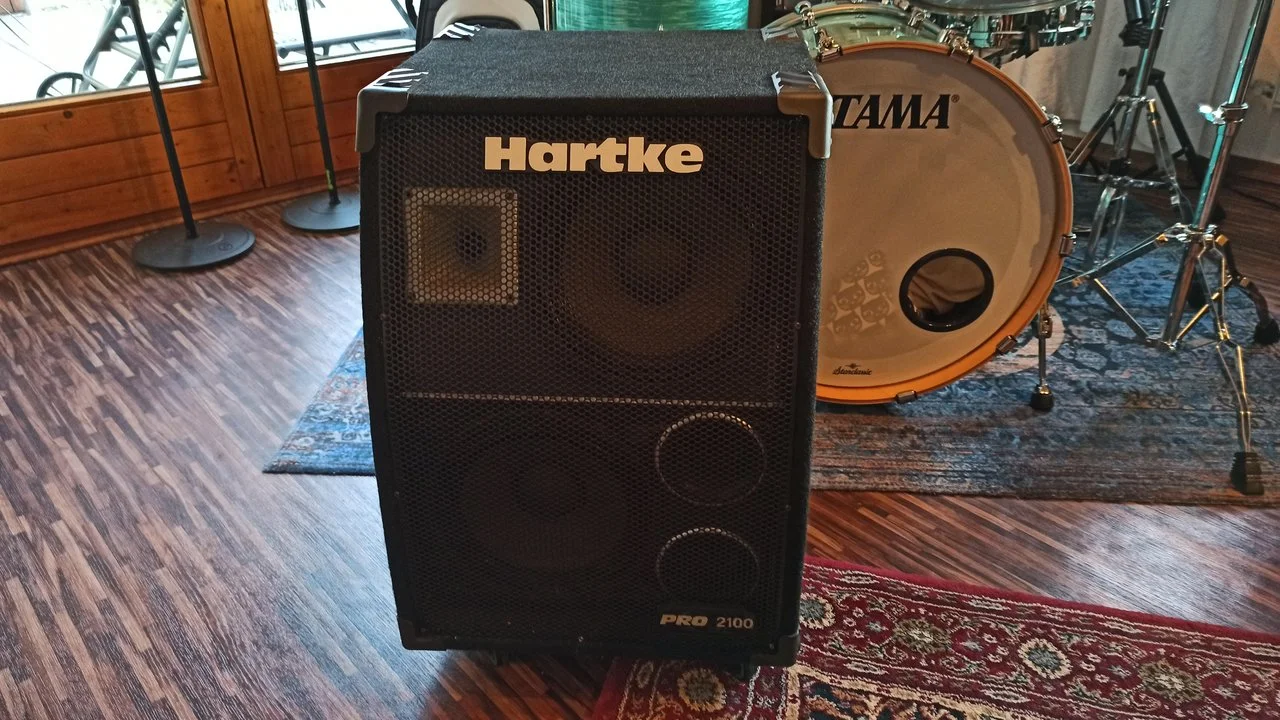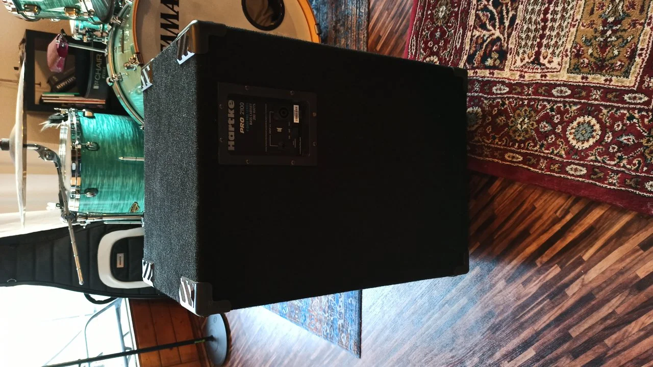 Ich hab mir die Box vor etlichen Jahren als kompakte Proberaumlösung gekauft und schnell gemerkt dass die verbauten Aluspeaker mit einer Belastbarkeit von 200W an 4Ohm bei manchen Topteilen an ihre Grenzen geraten und habe sie deshalb beim Hans auf FMC Speaker umrüsten lassen. Hat jetzt 400W an 4Ohm. Klingt auch ordentlich und hat mir im Bandkontext immer locker gereicht. Allerdings gibt es die Band und den Proberaum nicht mehr, deshalb darf sie gehen. Zustand ist gut, hat den besagten Raum nie verlassen. Funktioniert auch alles wie es soll.