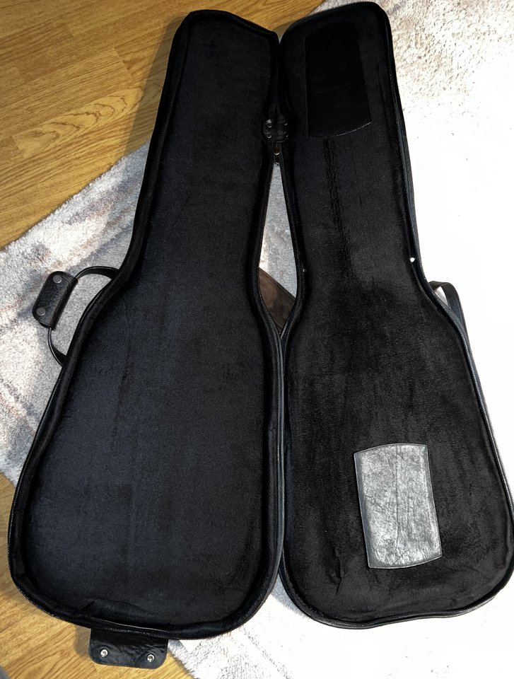 Lage: Innen anti-elektrostatisches, strapazierfähiges Polyamid-Futter. Mit zwei Lederpatches zum Schutz für Brücke, Saiten und Mechanik.