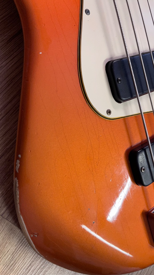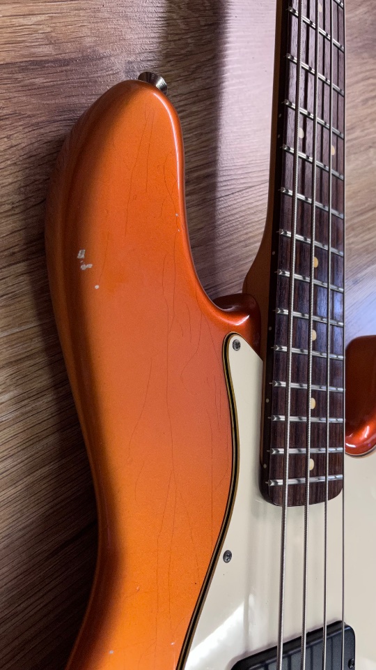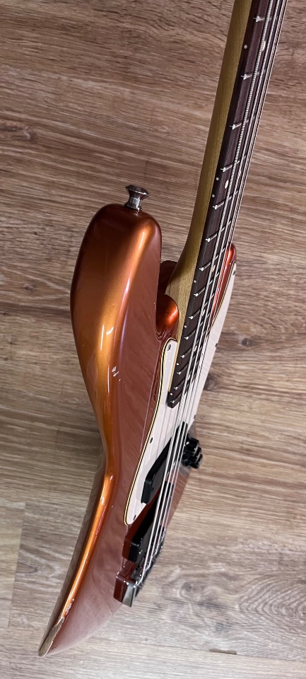 Das Copper Orange Metallic Nitro‑Finish mit bewusst dezentem Aging verleiht dem Jazz Bird eine authentische Patina – nichts wirkt künstlich oder aufgesetzt. Der Bass sieht aus, als hätte er bereits Geschichten erlebt – und ist bereit für die nächsten.