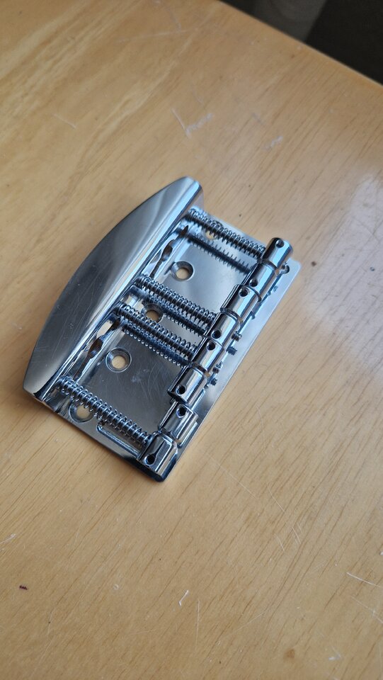 Hier biete ich eine Hipshot Brücke für MusicMan Style Bässe an, die freundlicherweise einen schnellen Saitenwechsel ermöglicht. Davon abgesehen einfach eine sehe gute Brücke, wie man es von Hipshot kennt.