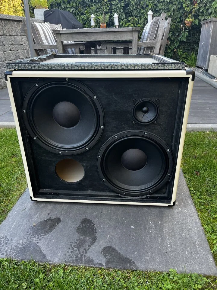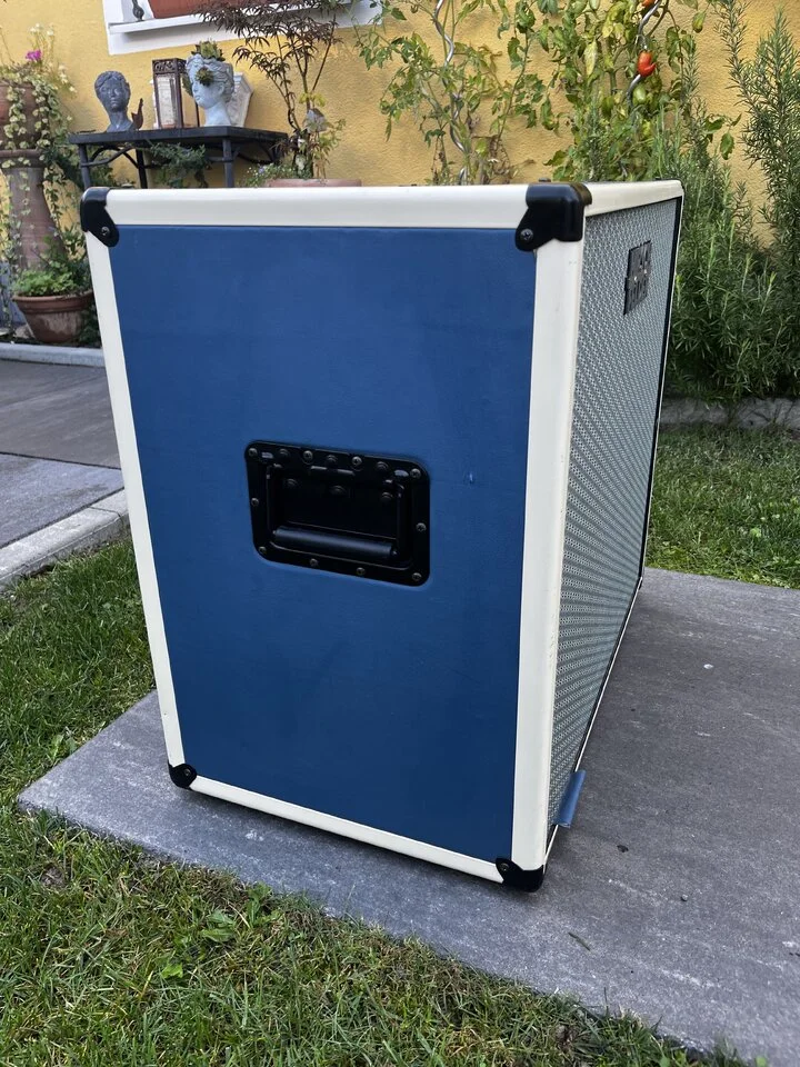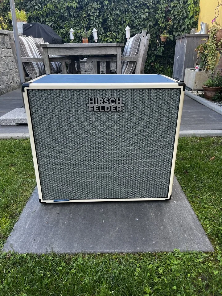 Ich verkaufe hier meine Hirschfelder 212 Box aus dem Jahr 2019. Die Box hat der Bassbauer Jacob Hirschfelder aus Halle für mich angefertigt, da sich aber in letzter Zeit meine Soundvorstellungen etwas geändert haben, muss sie nun leider wieder gehen. Verbaut sind 2 Faital Pro 12PR300 Speaker. Besonders an den Hirschfelder Boxen sind (neben den besonderen Frontbespannungen / Farben) dass keine klassischen Hochtöner verbaut sind, sondern stattdessen ein weiterer kleiner 4 Zoll Speaker, der nach obenhin aufmacht und dabei nicht ganz so spitz klingt wie die meisten Hochtöner. Funktioniert meiner Meinung nach super! Die Box hat einen schönen runden und warmen Sound, bei angezerrten Sounds kommt die Verzerrung aber immer noch super rüber!
