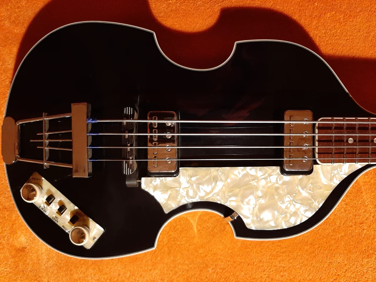 Hier mein Höfner Violinbass, den ich vor 2/3 Jahren neu gekauft habe. Habe mich für das schwarze Finish entschieden, weil er damit einfach eine Augenweide ist. Sieht edler aus als das altbackene sunburst, finde ich.