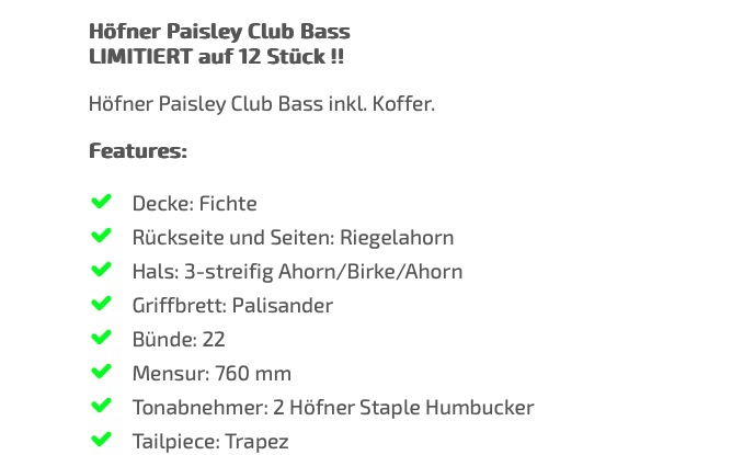 Verkaufe meinen Paisley Club Bass "Made in Germany", inkl. Koffer