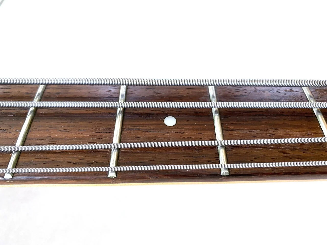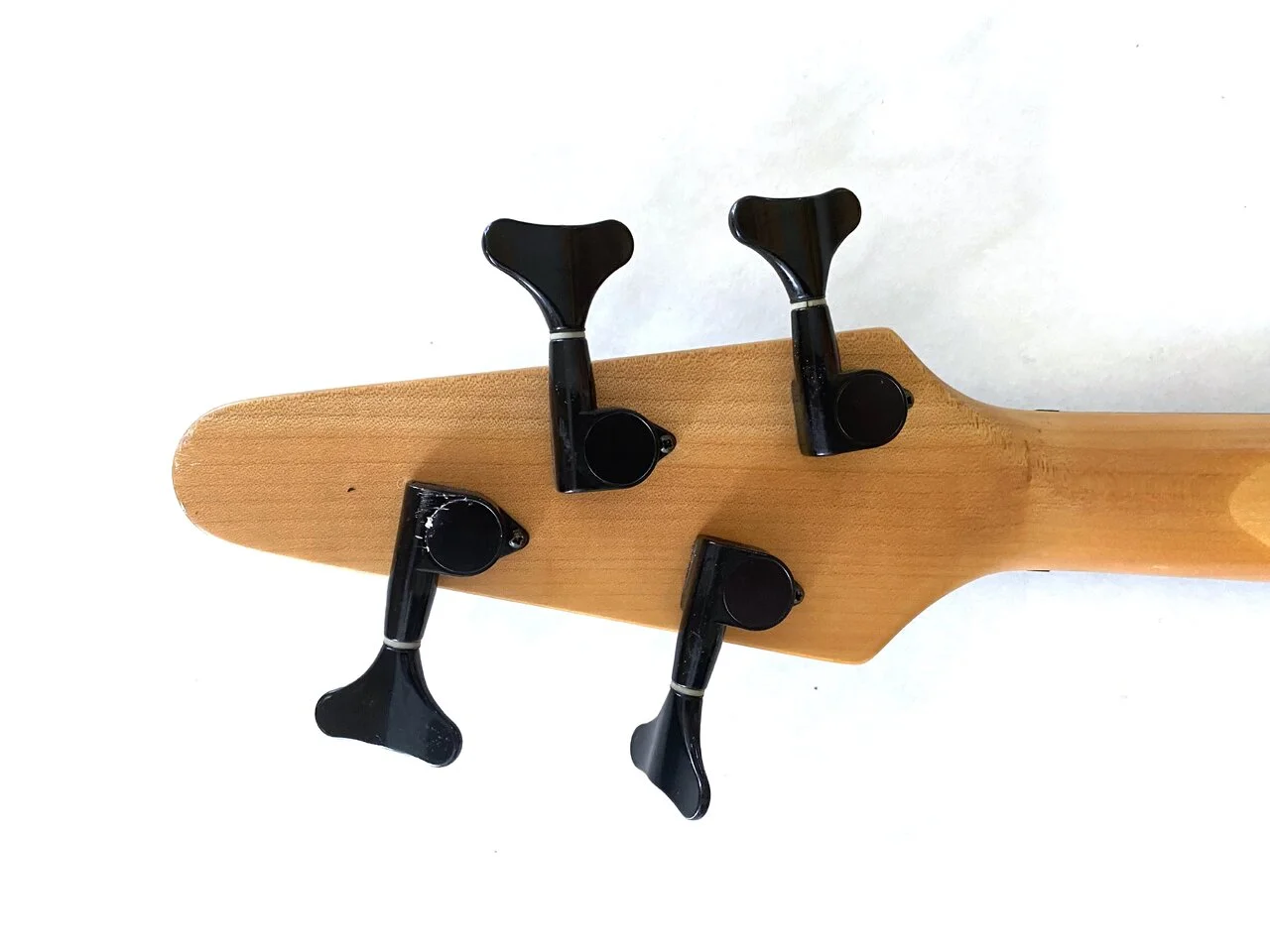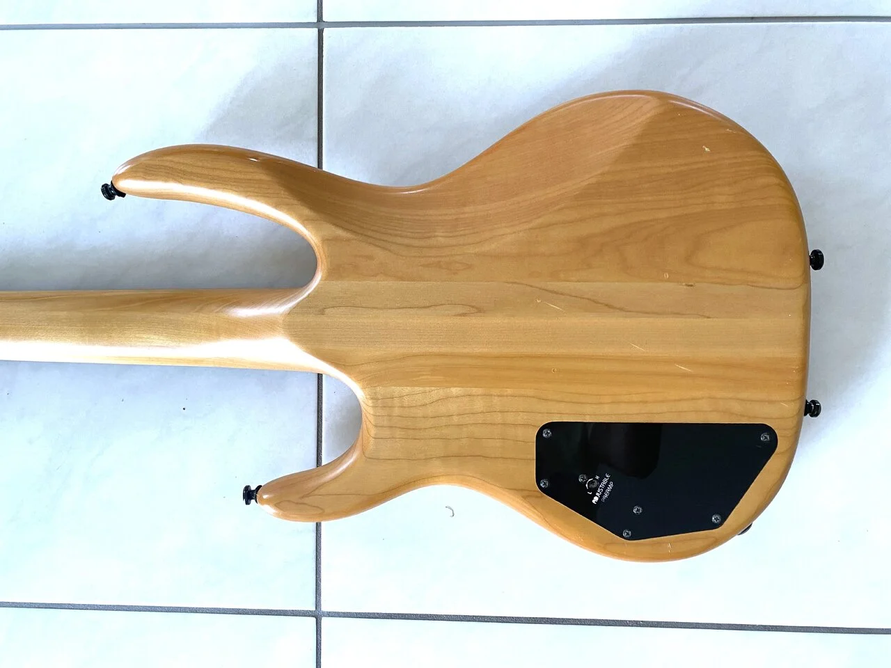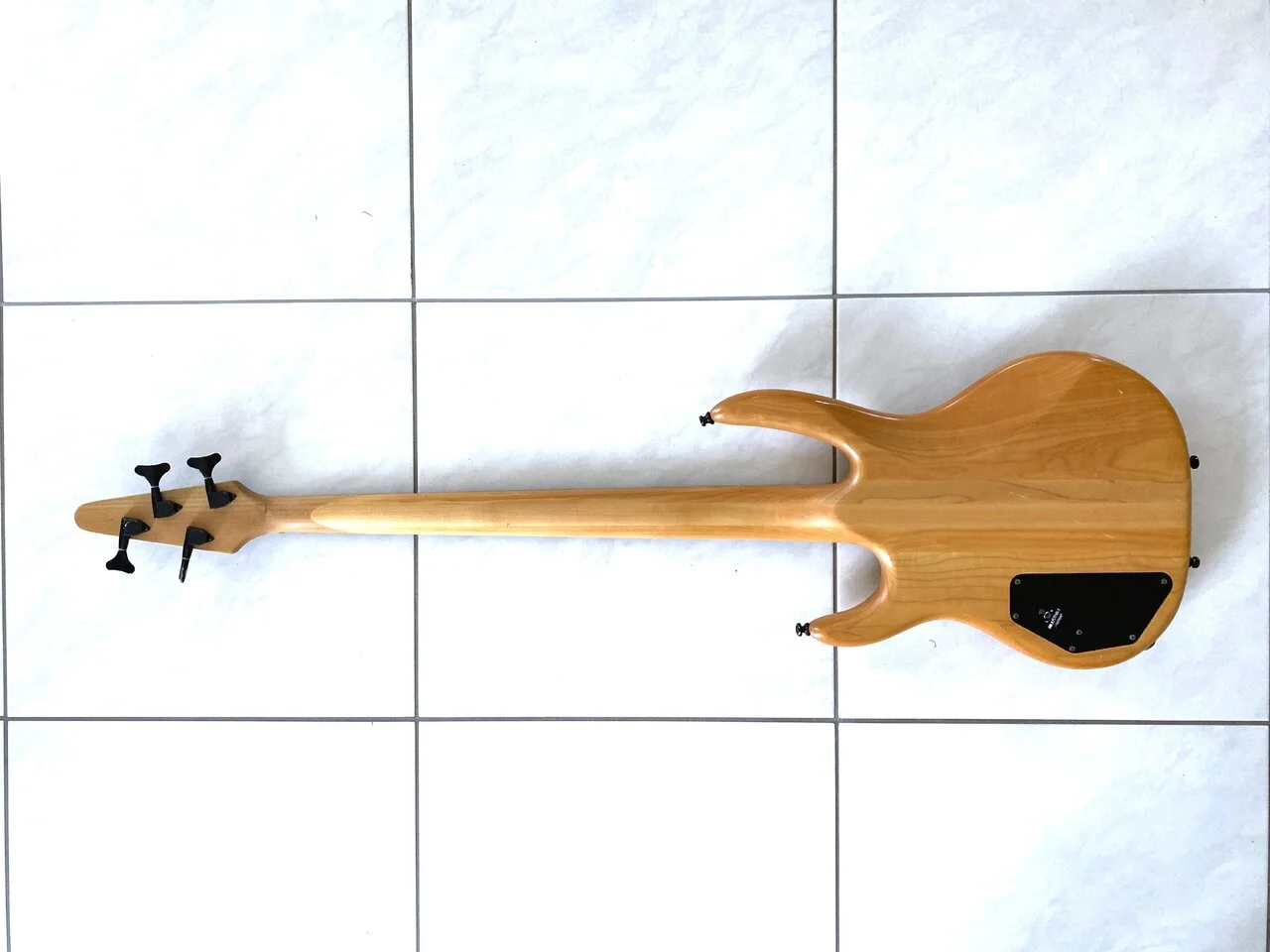 Der Bass ist mit zwei J-Style EMG Select Pickup ausgestattet, die über eine aktive Elektronik abgenommen werden. Diese Elektronik kann mittels eines kleinen Schalters abgestellt werden und dann ist der Bass auch passiv zu Spielen. Hals und Spannstab sind top i.O. Das fein gemaserte Palisander Griffbrett und an den Jumbobünden sind kaum Spielspuren erkennbar.