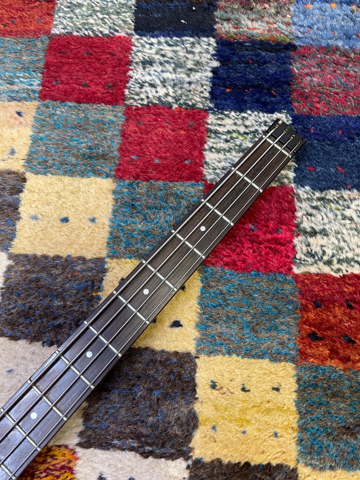 Verkaufe diesen headless Bass aus den 90ern. 24 Bünde mit einem gewissen Spaß-Faktor. Mir ist es nur zu wenig Korpus 🥴