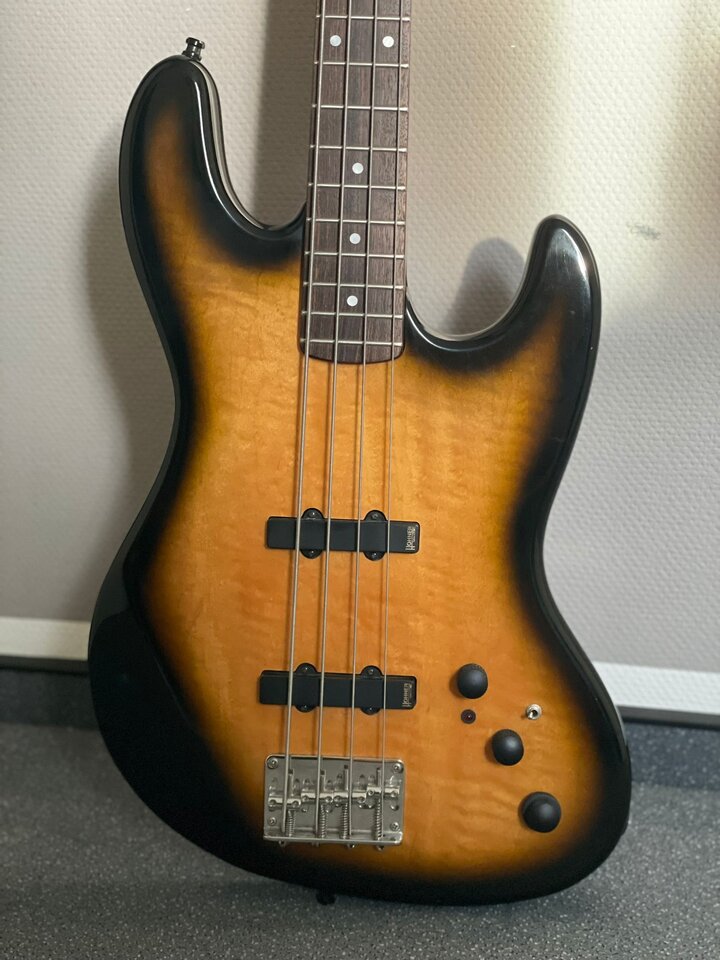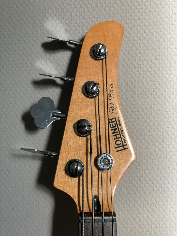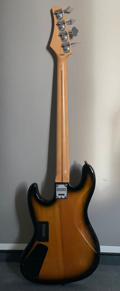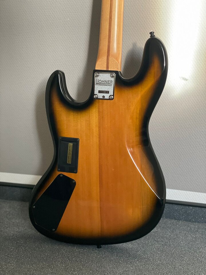 Hohner JJ Professional Bass aus den frühen 90er Jahren in hervorragendem Zustand. Der Bass gehörte damals zu den Premium Bass-Modellen der Marke Hohner. Hierbei wurden ausschließlich sehr gute „Zutaten“ verwendet, so dass der Bass deutlich „edler“ daherkommt als es die Marke vermuten lässt. Gemessen an Ausstattung und Sound würde das Instrument heute bestimmt in der 1k€-Liga mitspielen.