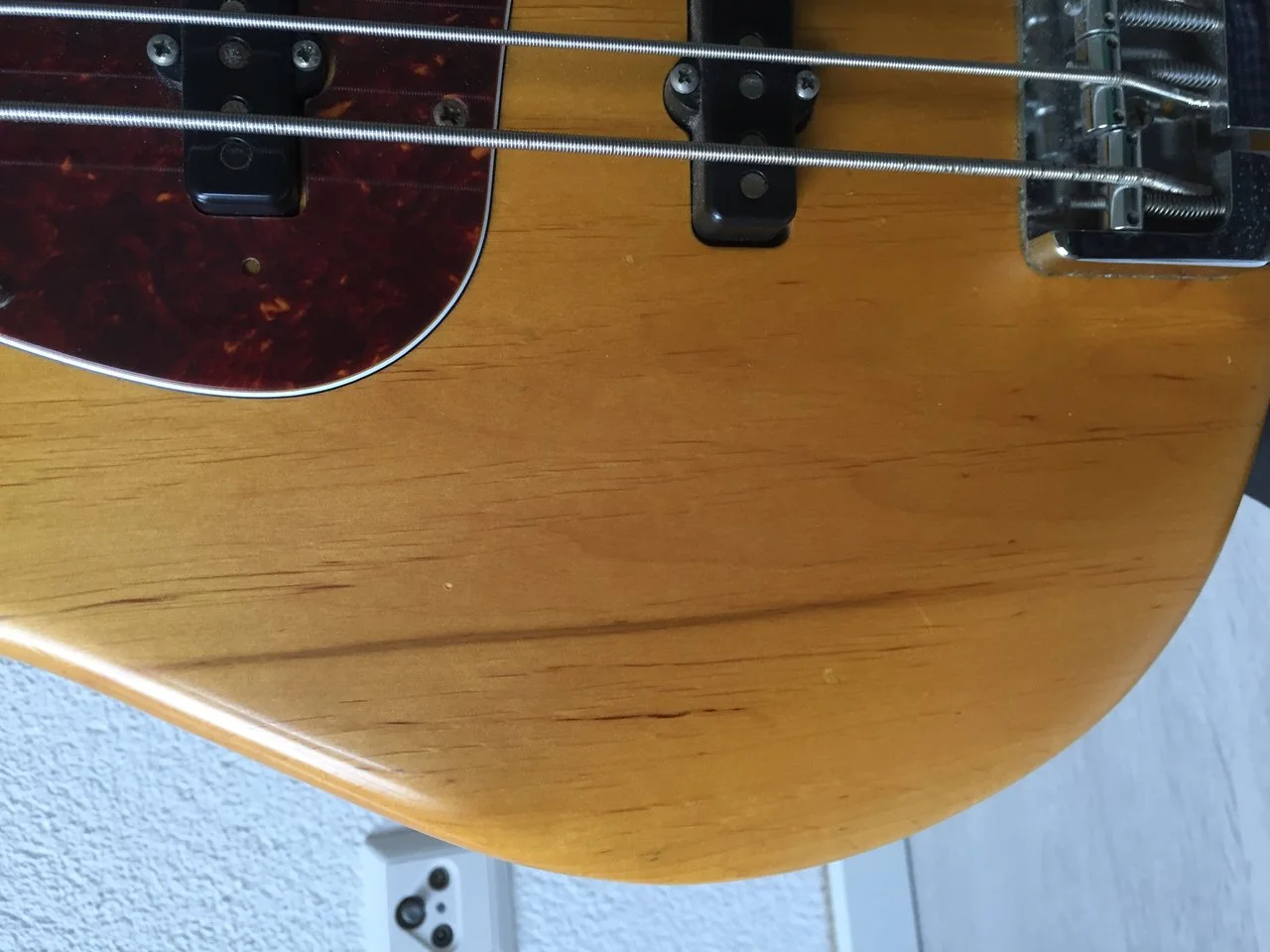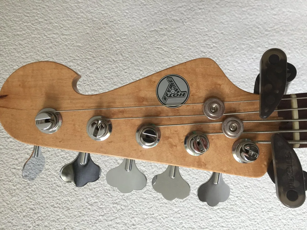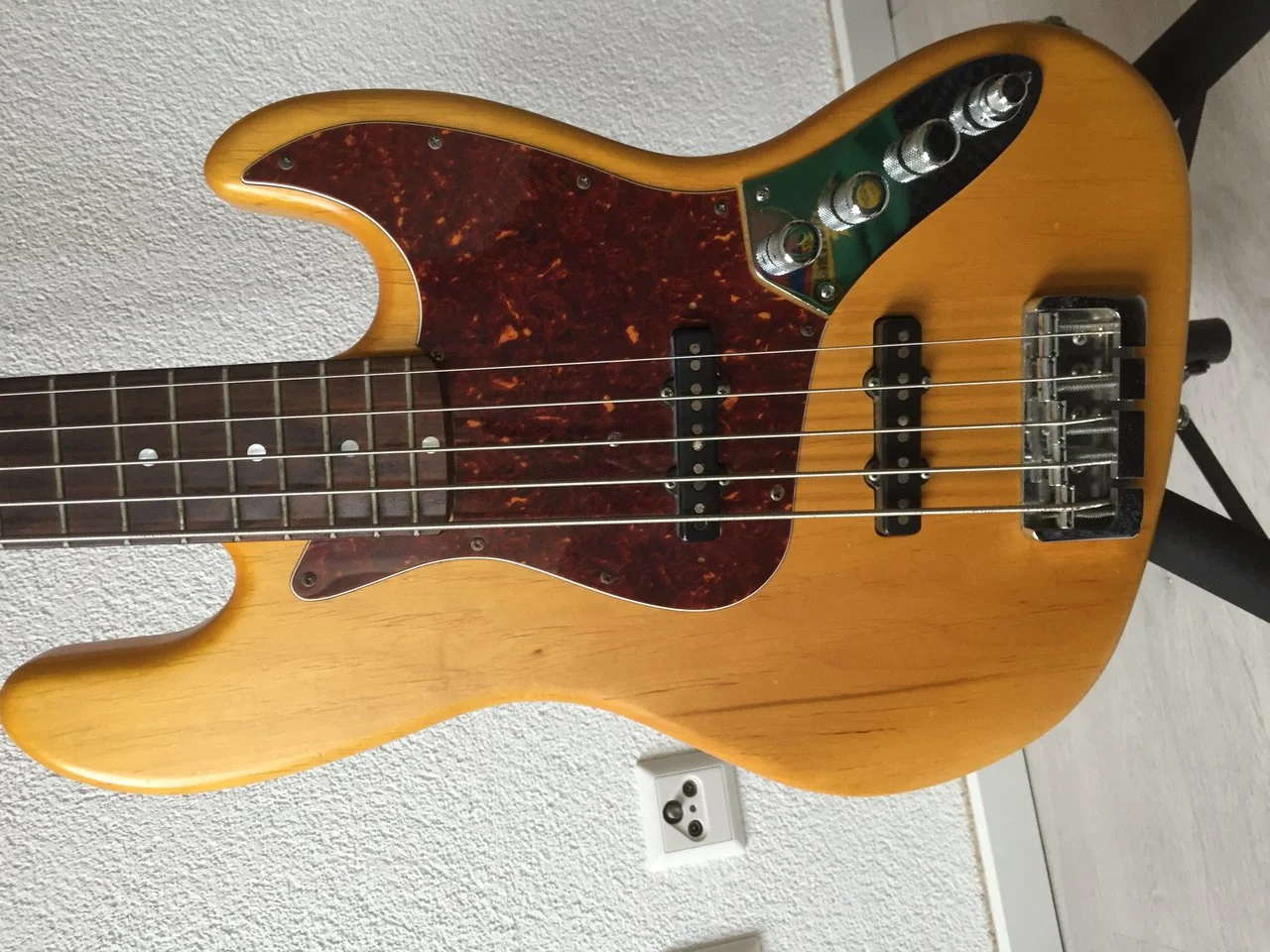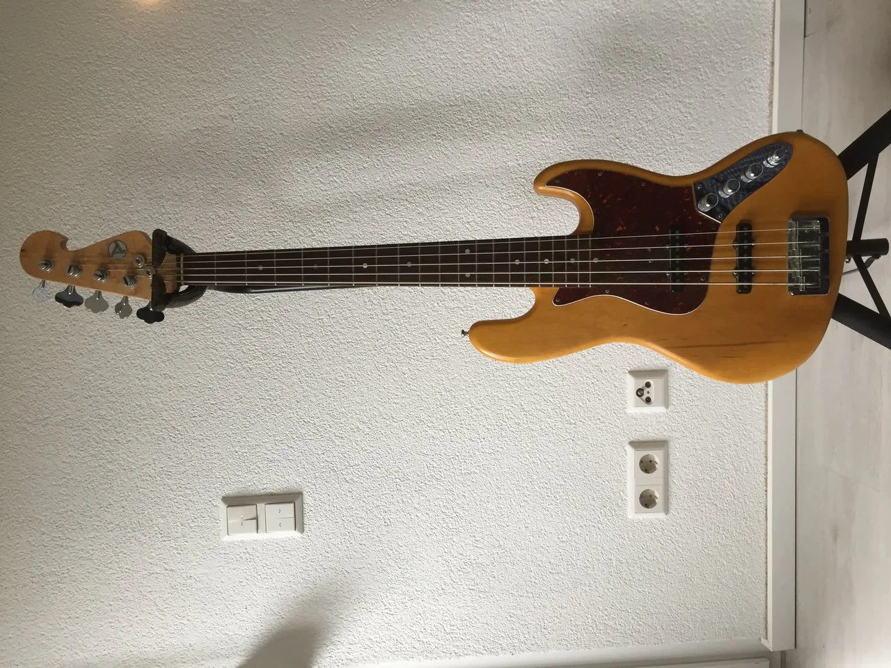 Ich verkaufe einen aktiven Hot Wire 5-Saiter Bass. Der Bass hat eine aktive 3-Band-Klangregelung mit Volume (Push/Pull – aktiv/passiv), Pickup-Blende, Höhen, Mitten und Bässen. Die Pickups sind meines Wissens von Häussel. Ein Highlight ist natürlich der Hals aus Vogelaugenahorn. Das Gewicht liegt bei 4,8 Kg. Der Bass hat ein paar Macken, wie sie im Einsatz auf zahlreichen Gigs leider nicht ausbleiben - s. Bilder.