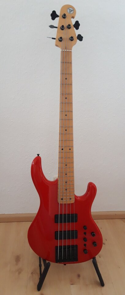 Jetzt wird´s exotisch: Hotwire Custom 5 Flash Bass, made by Bert Gerecht. Ein schicker 5-String mit vielen Soundvariationen.