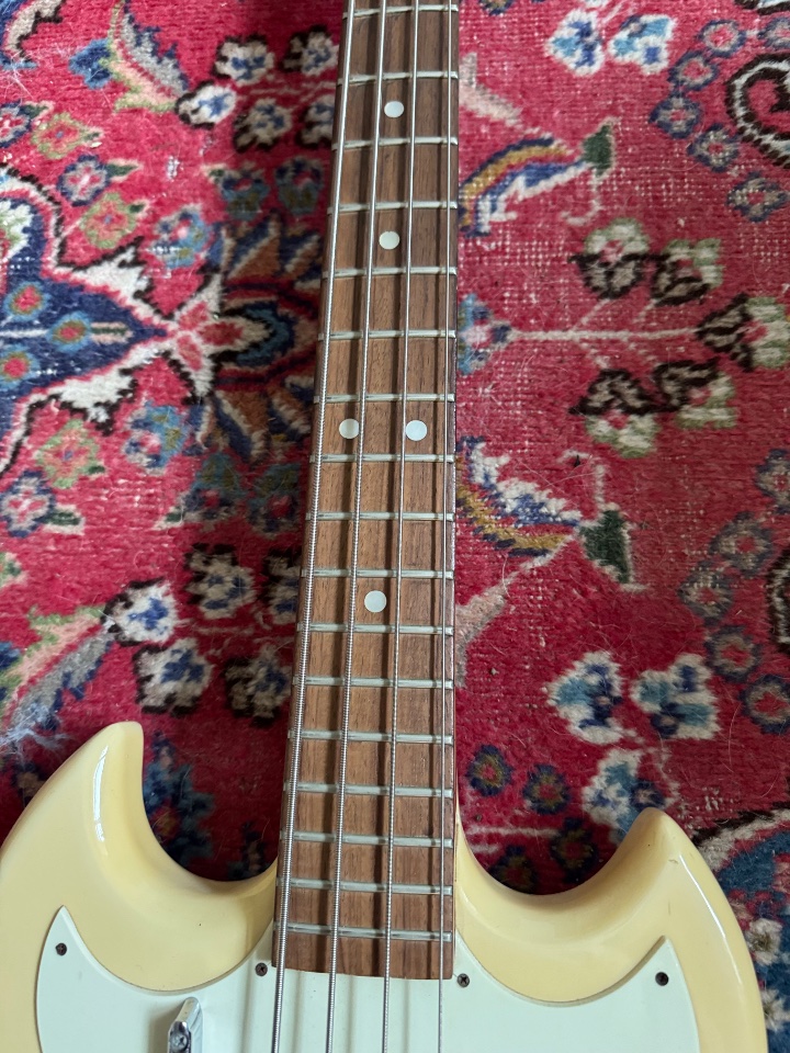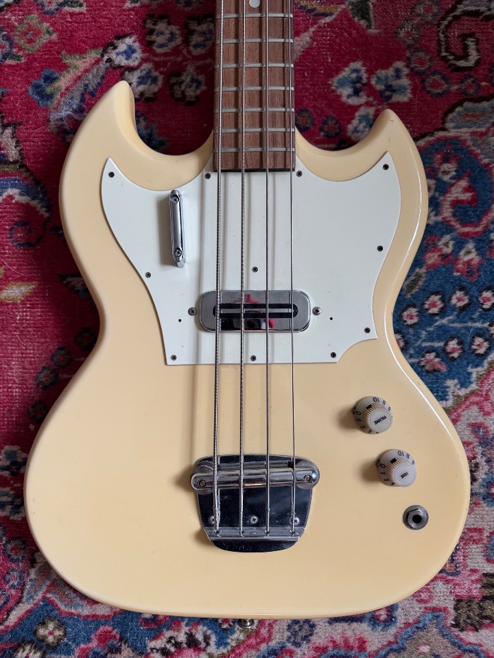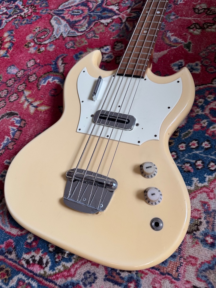 Biete hier einen schönen Hoyer 5047 Shortscale Bass aus dem Jahr 1972 in einem wunderschönen Cremeweiss.