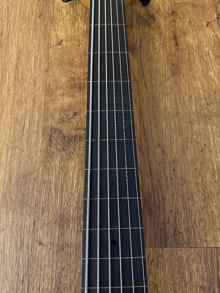 Der Bass lässt sich trotz seiner 6 Saiten butterweich bespielen, der Sound ist durch die beiden Bartolini Soapbar-Pickups und den 3-Band EQ genau so, wie man es sich von einem Fretless Bass erhofft. Der Sound ist glasklar und der Bass singt wunderschön. Ebenfalls vom Vorteil, ist das für einen 6-Saiter sehr angenehme Gewicht von nur 4,2-4,3kg.