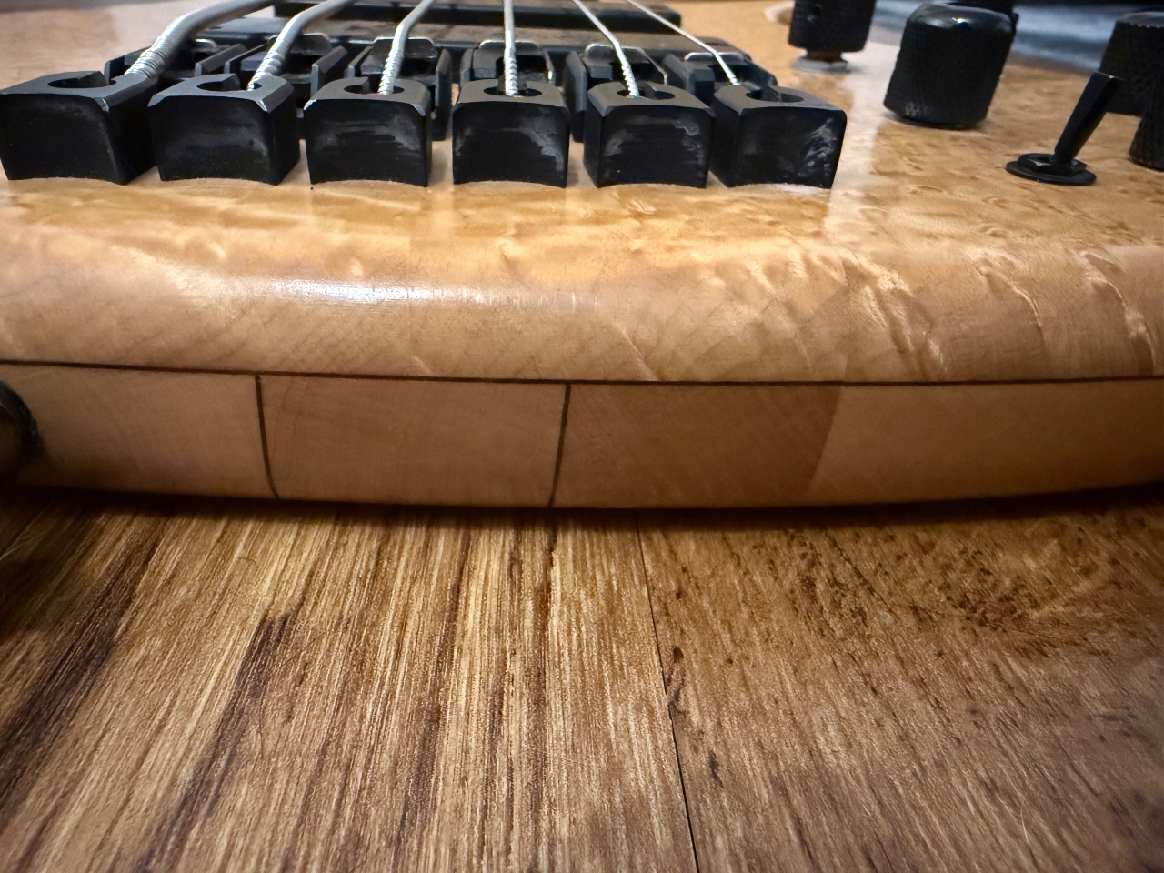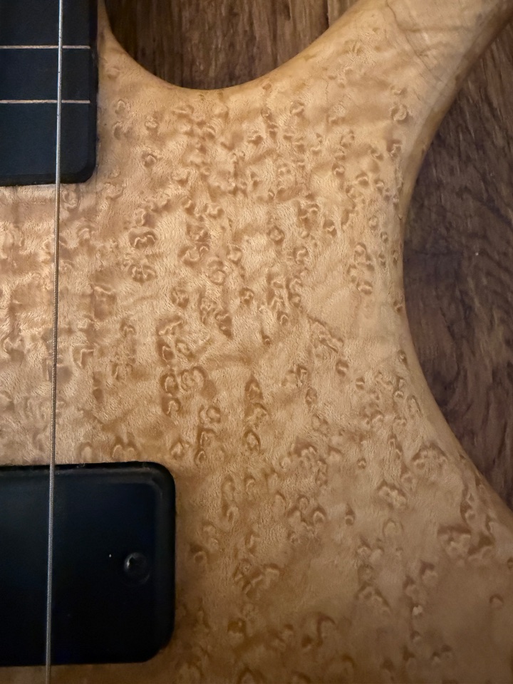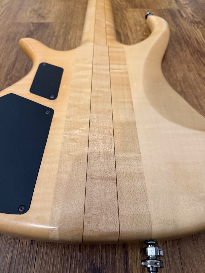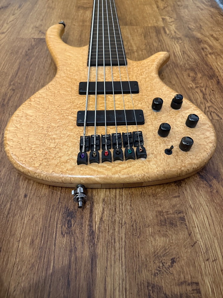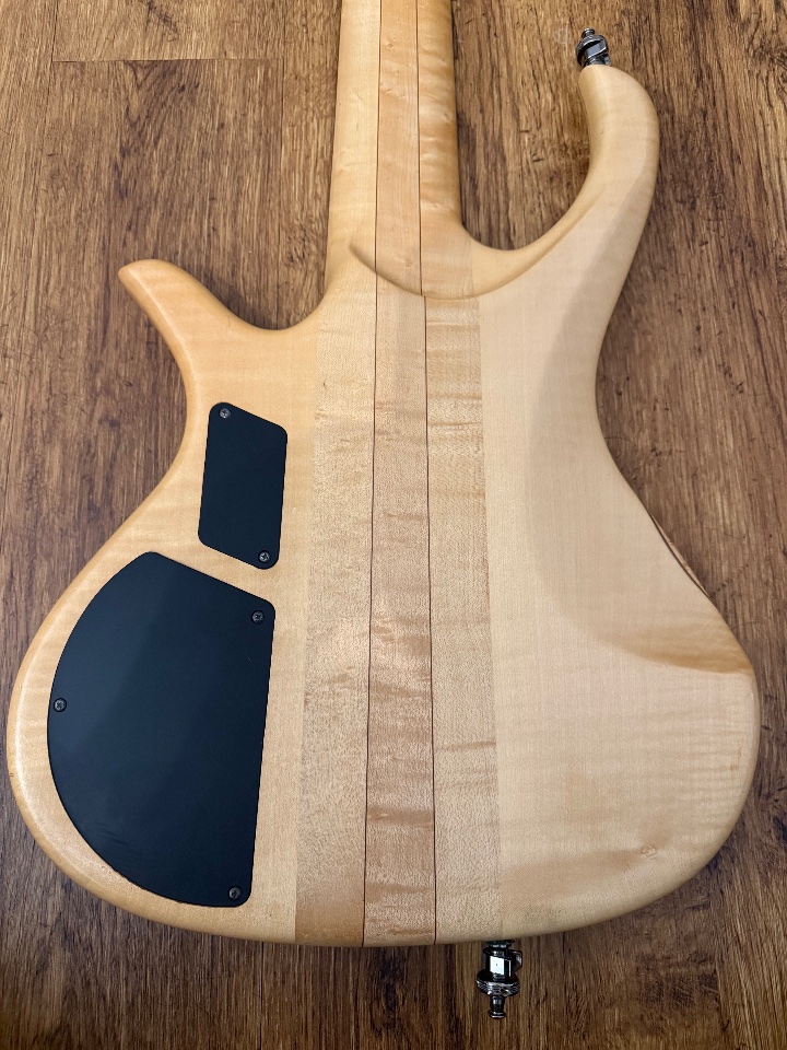 Zum Verkauf steht dieser 6-Saiter Jonas Fretless der Marke Human Base von Siggi Jäger, welcher für seine Ahornkunstwerke bekannt ist und dieser Bass hier stellt keine Ausnahme dar.