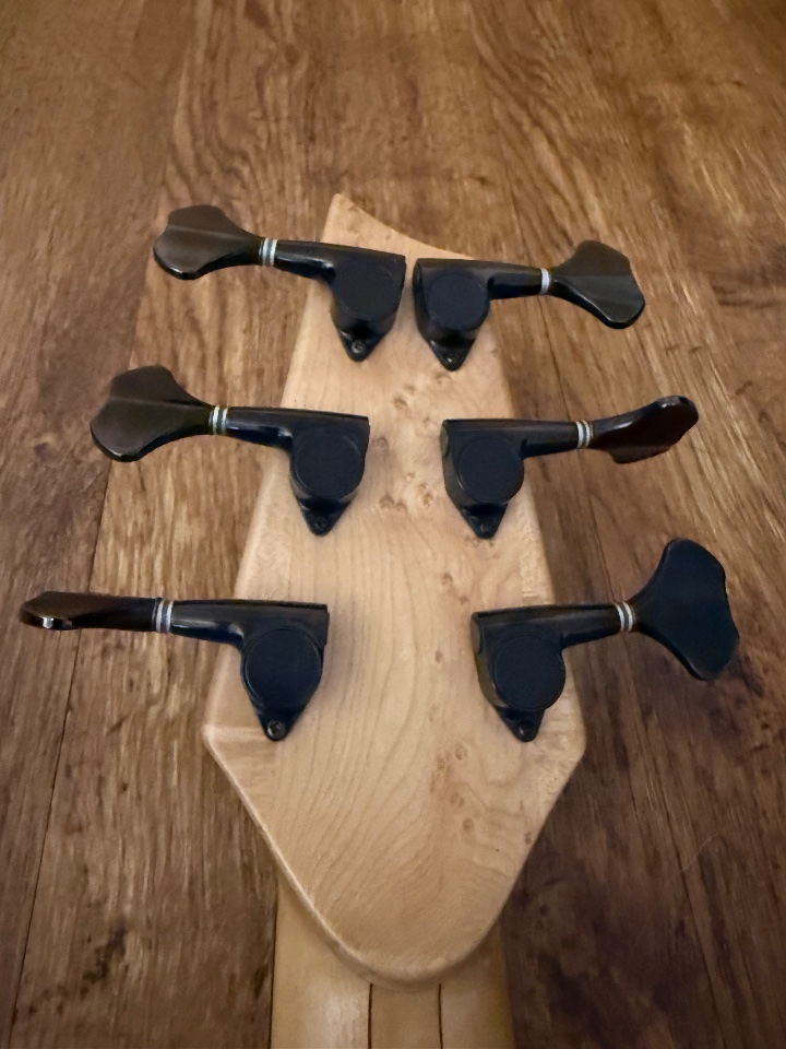 Der Bass hat Aufgrund seines Alters (frühe Seriennummer 146, geschätzt aus Anfang der 2000er) eine kleinere Abnutzungsspuren sowie einen kleinen Riss am oberen Guethalter (diese habe ich versucht in den Fotos bestmöglich abzulichten), befindet sich aber in Anbetracht des Alters in einem sehr guten Zustand und funktioniert einwandfrei!
