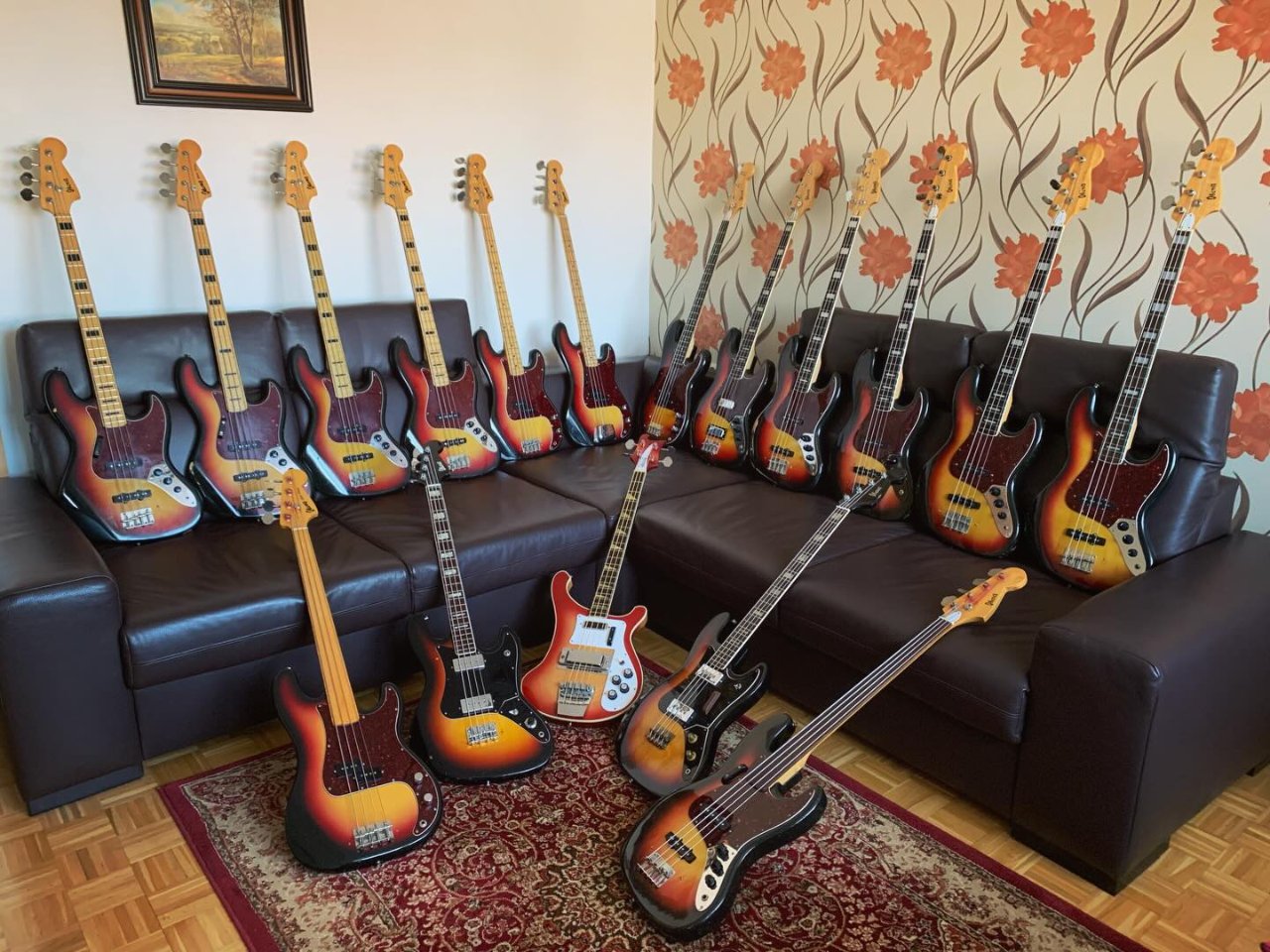 It took me 17 years to collect this ultimate collection of 17 Ibanez bass guitars from the 70s in sunburst. Together they are almost 1000 years old and almost all of them are 100% original (only minimal interventions were made to them). In the collection we can find the following types: jazz bass, precision bass, rick, shortscale, jazz bass fretless, precision fretless. The time is slowly approaching when I will decide to sell them, but I have one condition. The future buyer must buy all 17 at once