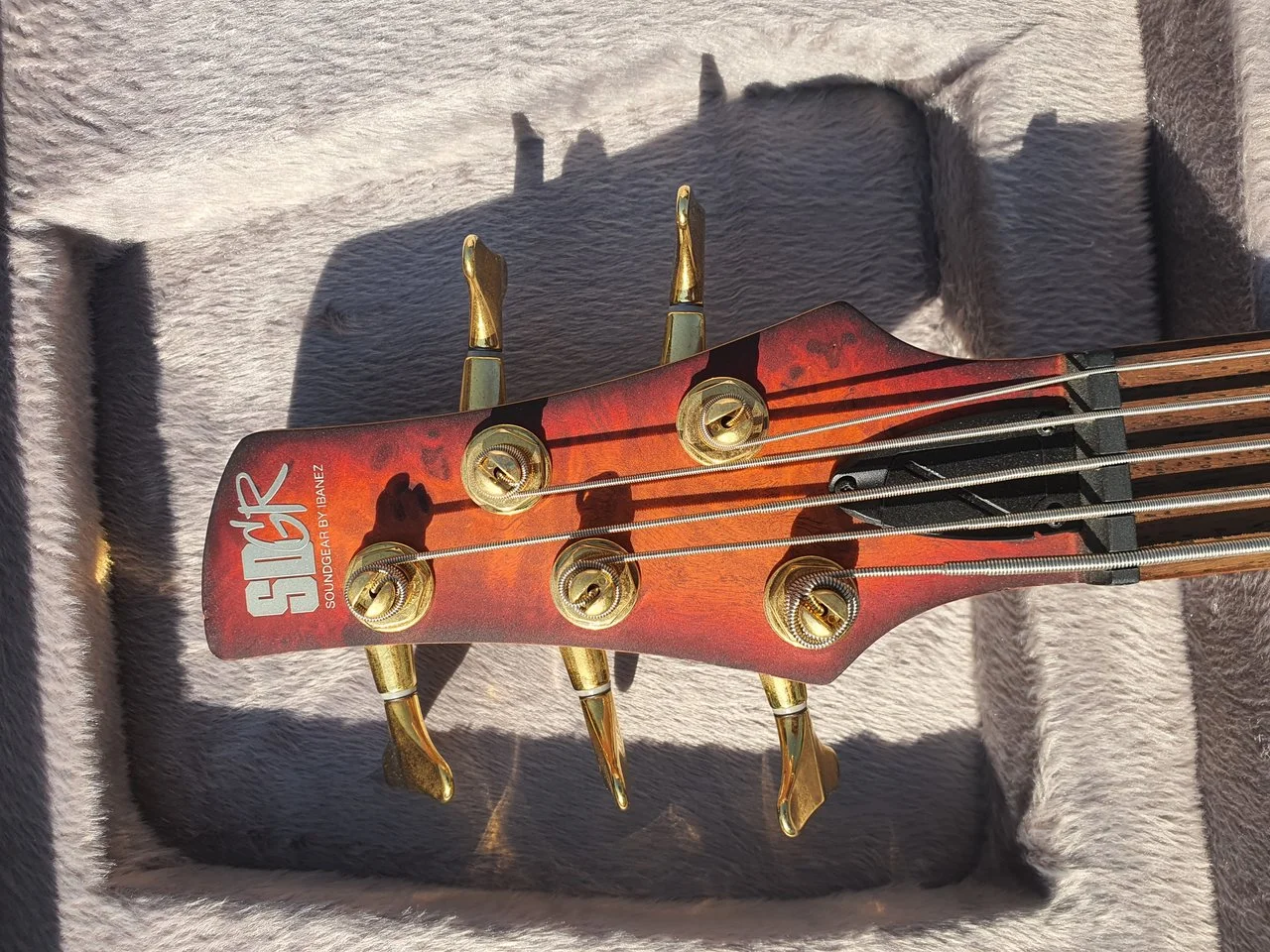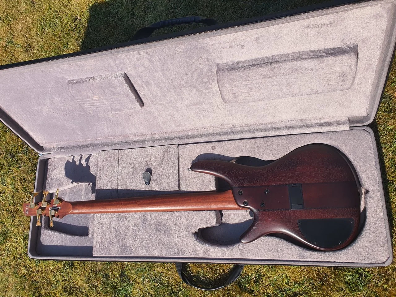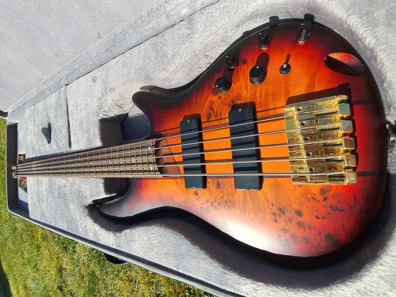 Ich möchte mich von diesem schönen 5 Saiter Bass trennen, weil mir das enge Stringspacing nicht liegt und ich mit meinen großen Händen überhaupt nicht damit zurecht komme. Ansonsten ein tolles Teil mit komfortabler, sehr niedriger Saitenlage und umwerfendem Klang. Die größte Macke habe ich fotografiert. Bünde sind neuwertig und sonst ist alles ok.