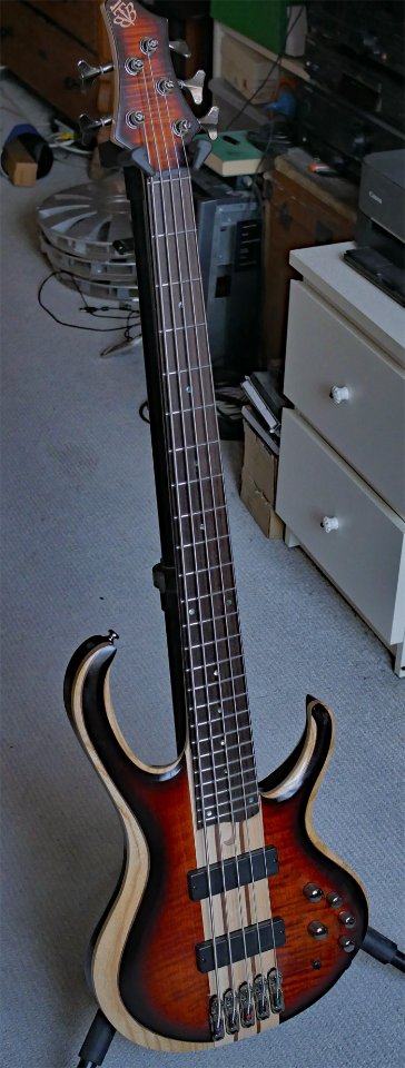 Neuwertiger aktiver 5-saiter Bass. Schöne Optik, voller, variabler Sound. Gewicht ca. 4,5kg.