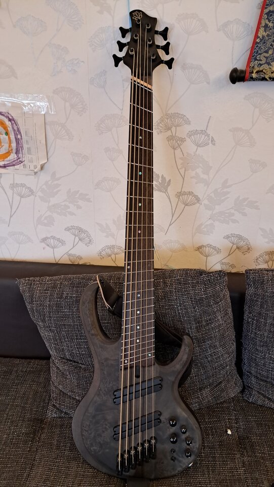 Die Originalbrücke für die BEADGC Besaitung ist vorhanden. Mit dem aktuellen Setup spielt sich der Bass einwandfrei.. ich hab mal eine Weile die Architects gecovert... das Original wurde mit einem Umbau eines Viersaiters auf G0# C A D oder so gespielt...