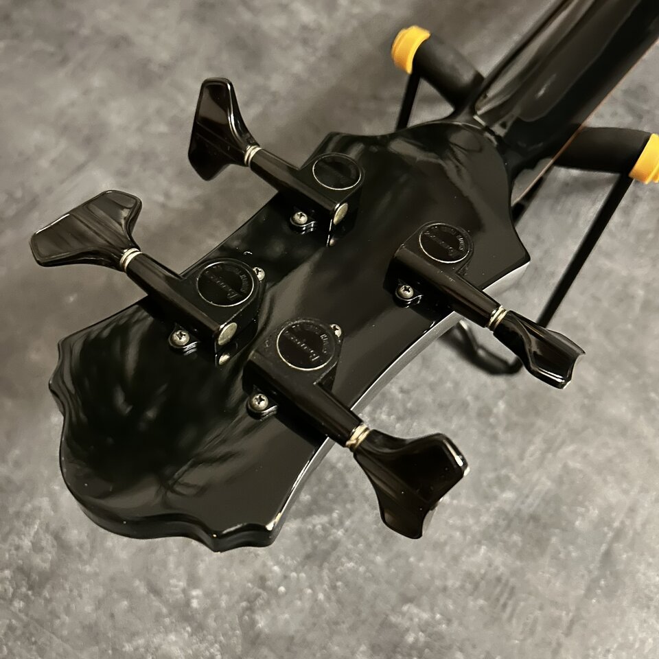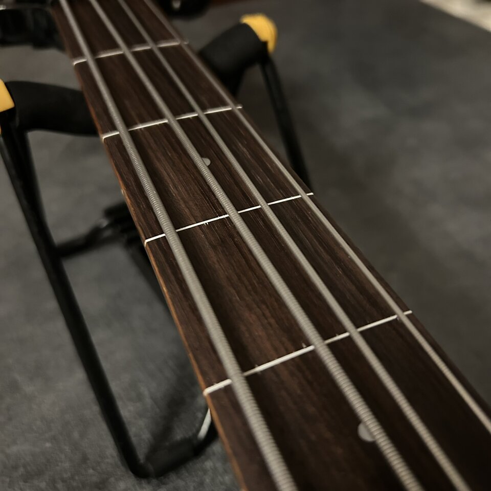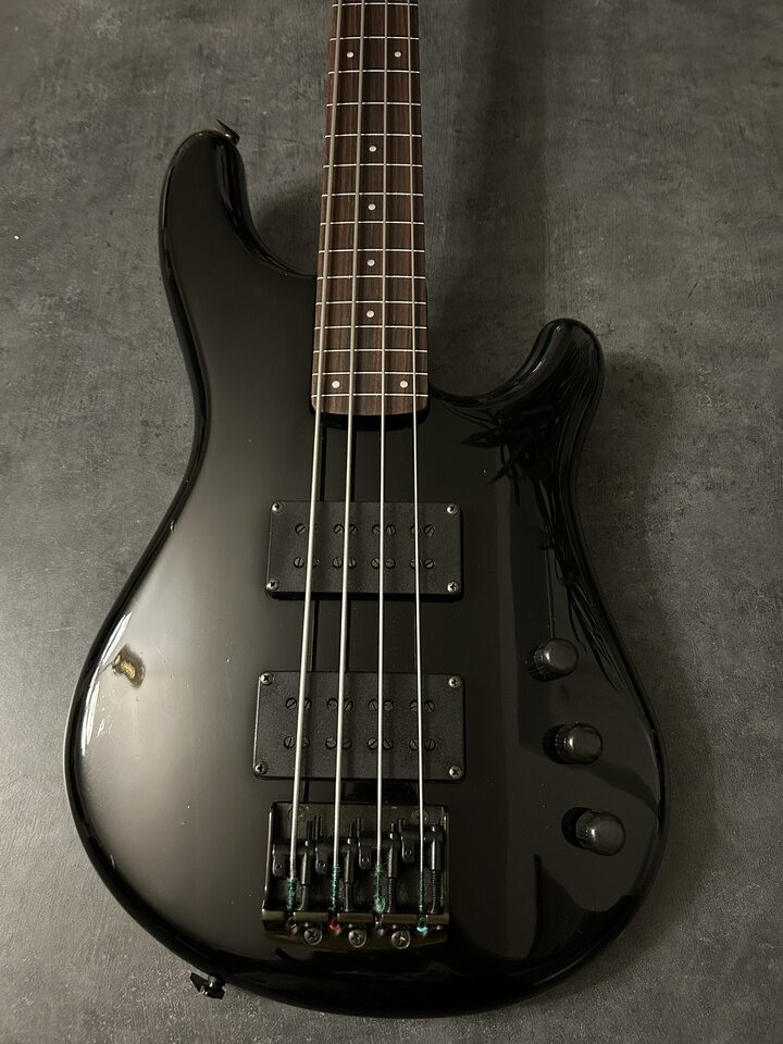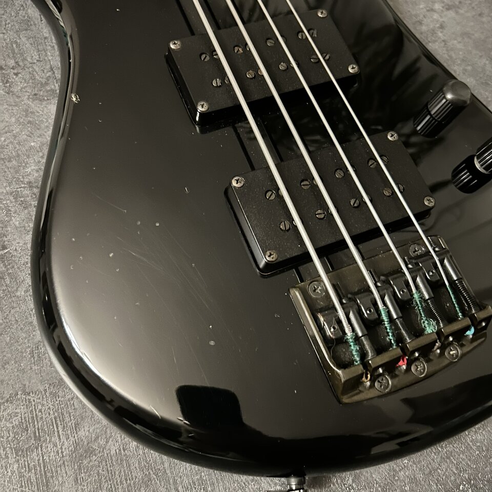 Technically, the bass is in very good condition – the hardware and electronics work perfectly, the truss rod is functional, and a few months ago, the fretboard was thoroughly sanded by a luthier. Visually the bass looks decent, although you can find lots of scratches and dots on the body against the light; I tried to capture this in the photos. There are also a few paint chips on the lower edge. The headstock and neck look great. Since the sanding, the bass has been played exclusively with flatwound strings.