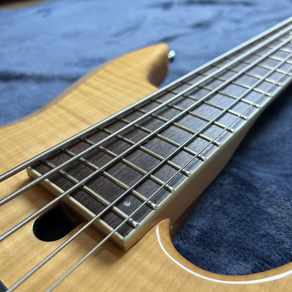 Manually the bass is a mix of MM and Precision - the string spacing is 18mm, the radius is flat, and the neck is neither thin nor thick. I have short fingers, but it feels very comfortable and fast. Low action. An additional advantage is great access to all 24 frets.