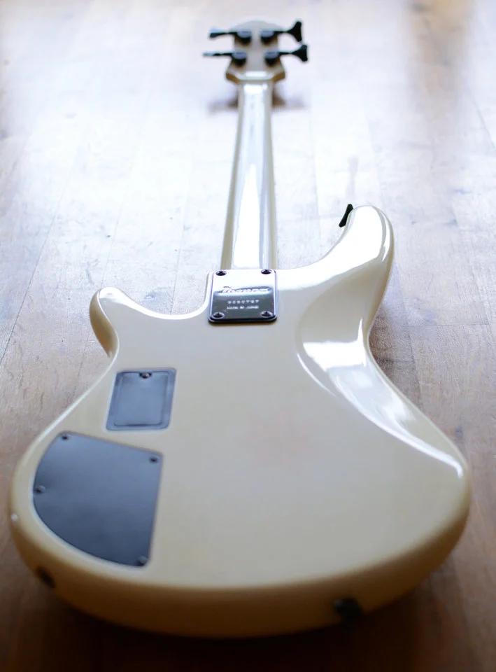 Nun habe ich nach 30 Jahren wieder etwas angefangen zu spielen, jedoch habe ich das Gefühl, dass dieser Bass in seinem tadellosen Zustand eher was für Sammler als für mich ist. Er spielt sich nach wie vor großartig und klingt mit seiner aktiven Elektronik in meinen Ohren extrem gut. Selten zu finden ist die RB850 Version (Deluxe?) mit den zwei schlanken geschlossenen Humbuckern. Das Design gefällt mir bis heute sehr gut und hat die darauf folgende Soundgear Serie wohl maßgeblich geprägt. Auch sein ausgewogenes Gewicht ist mit 3,75kg traumhaft leicht (obwohl er meines Wissens keinen "Chambered Body" hat).