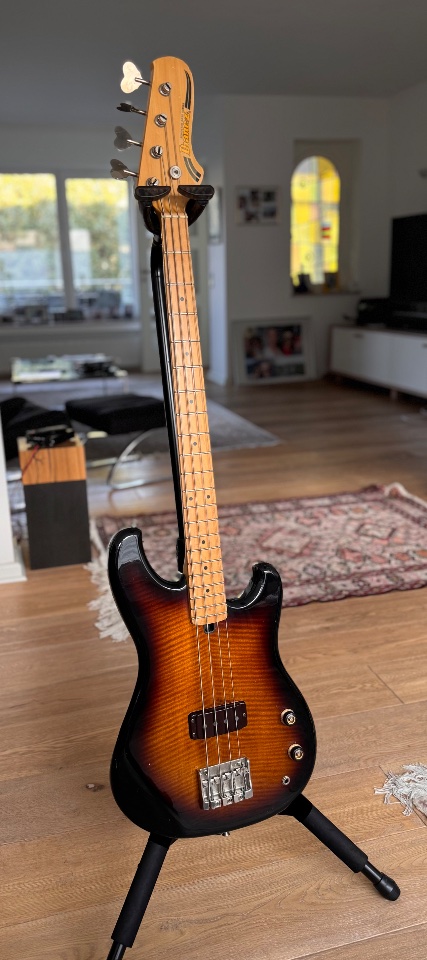Ein herrlicher Rockbass. Schwer, unkaputtbar, durchsetzungsstark. Der Bass ist im Originalzustand. Er hat in den letzten fast 46 Jahren sichtbar einiges erlebt und wurde offensichtlich nicht geschont. Siehe Fotos - ich habe versucht, alles in hoher Bildqualität festzuhalten. Die größte Macke ist die unterhalb der Vol/Ton-Potis.