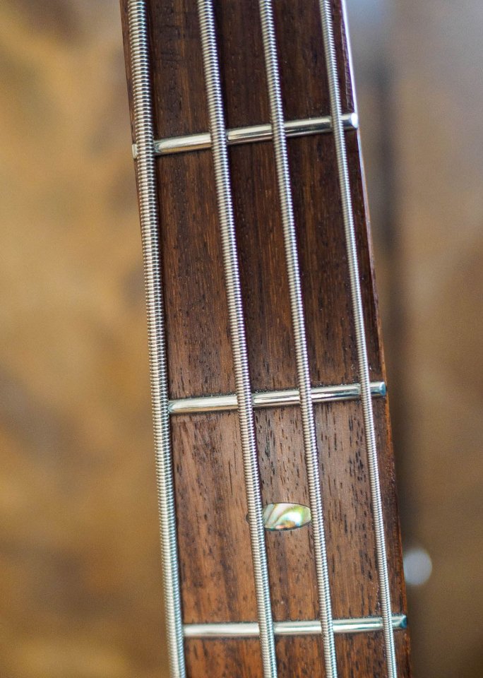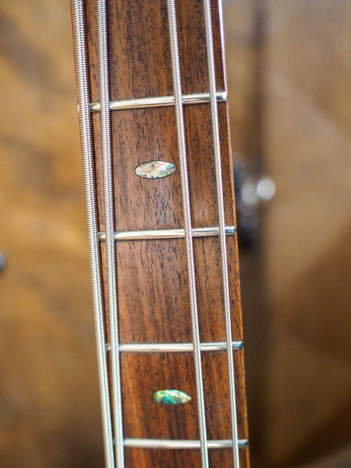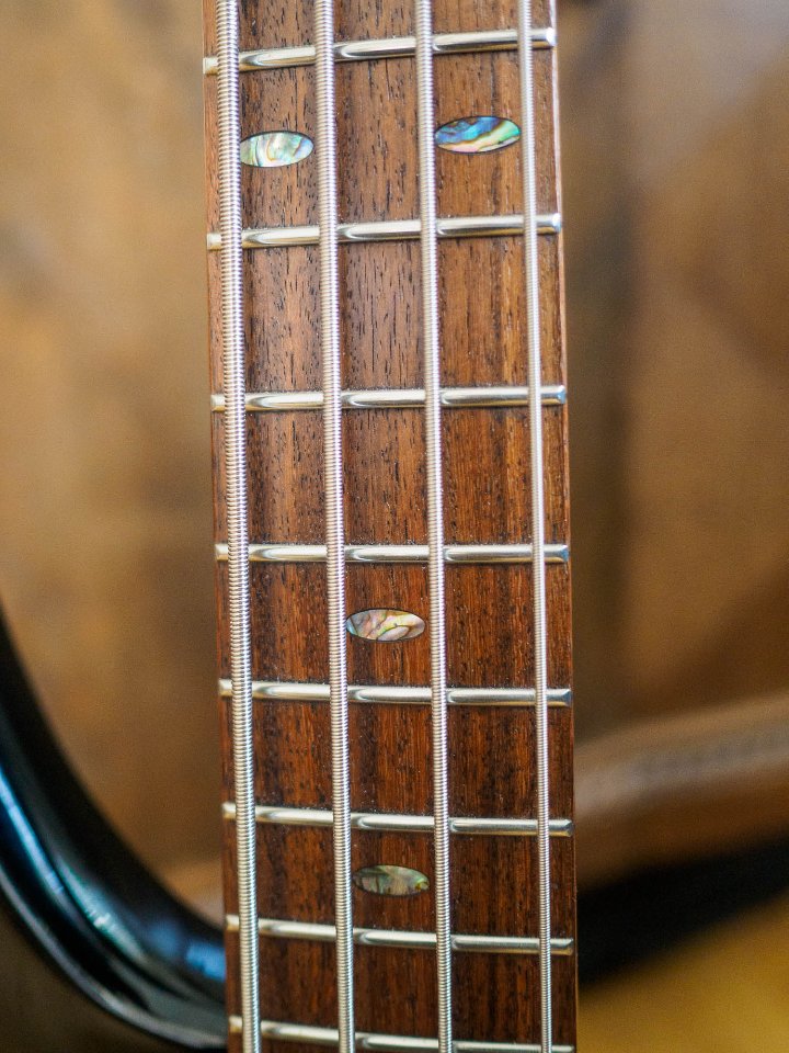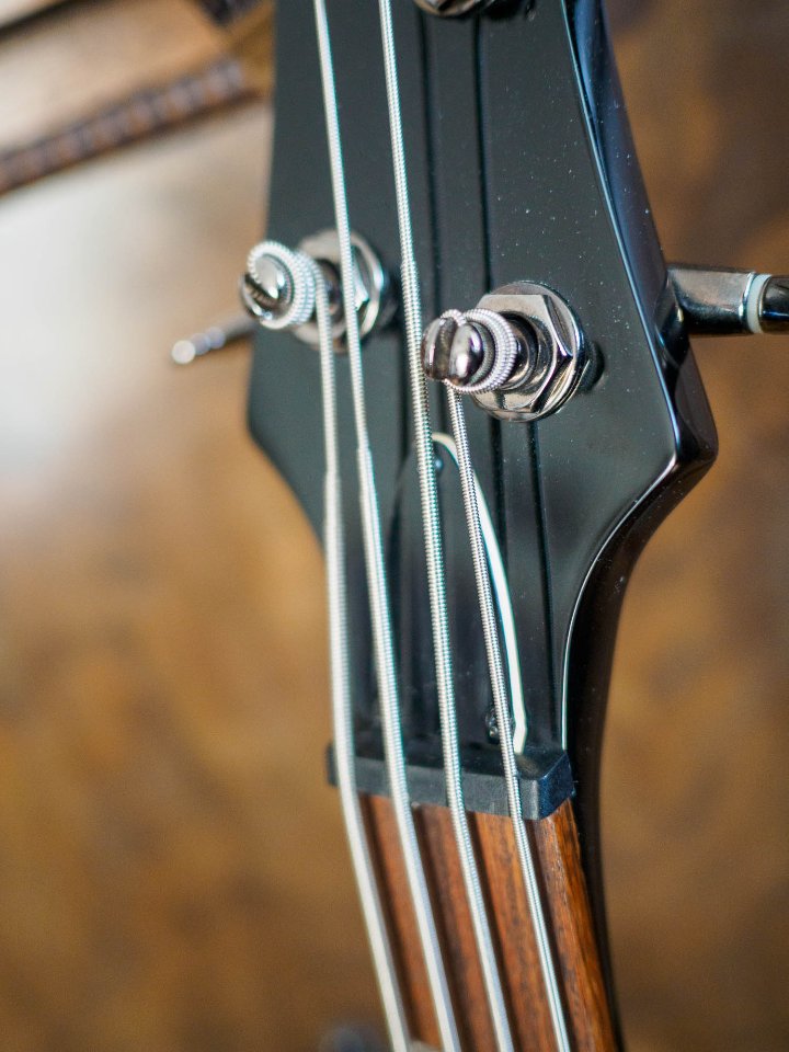 Aktuell ist der Bass HEAD-besaitet, eine hohe G-Saite kommt mit.