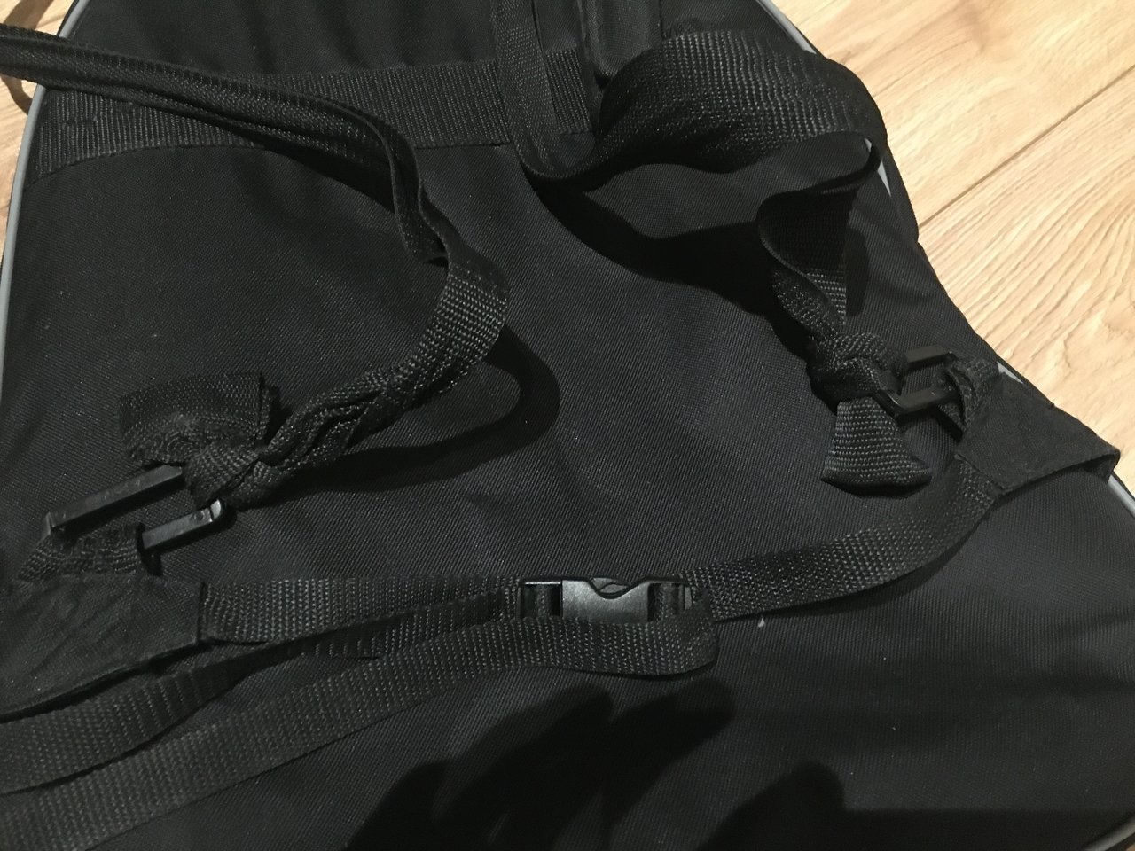 Mit dabei ist ein Gigbag, an dem allerdings die Plastik-Feststellspangen der Schultergurte gebrochen sind. Ich habe die Gurte einfach festgeknotet und ihn so weiter verwendet – funktioniert problemlos, sieht allerdings nicht so schön aus.