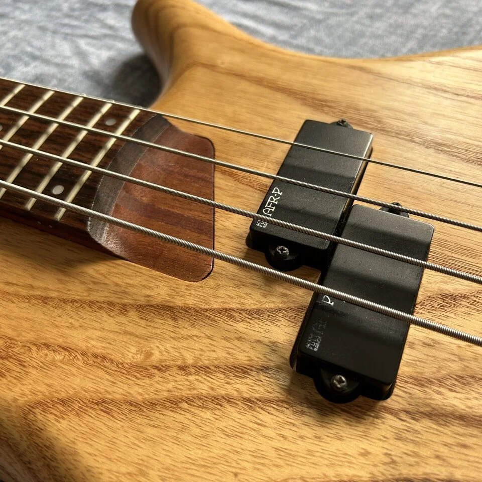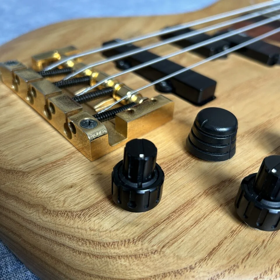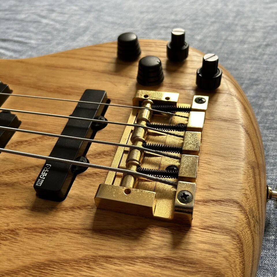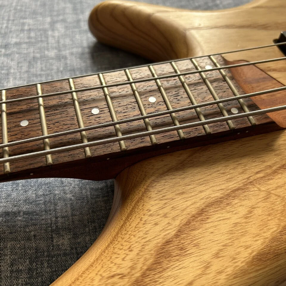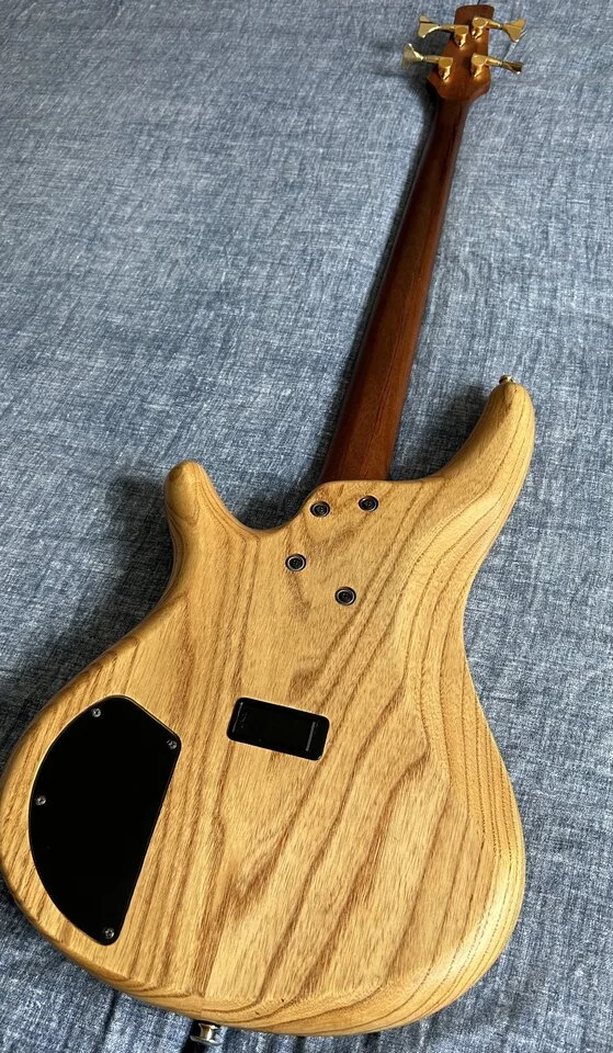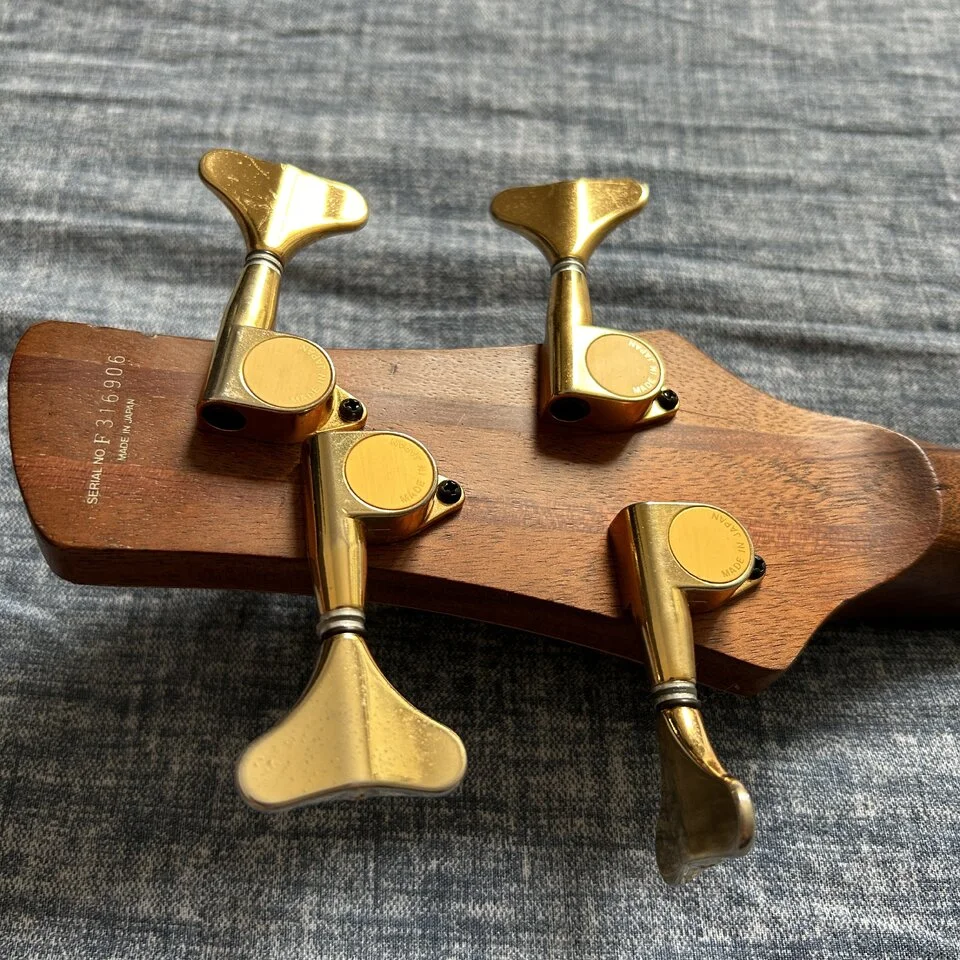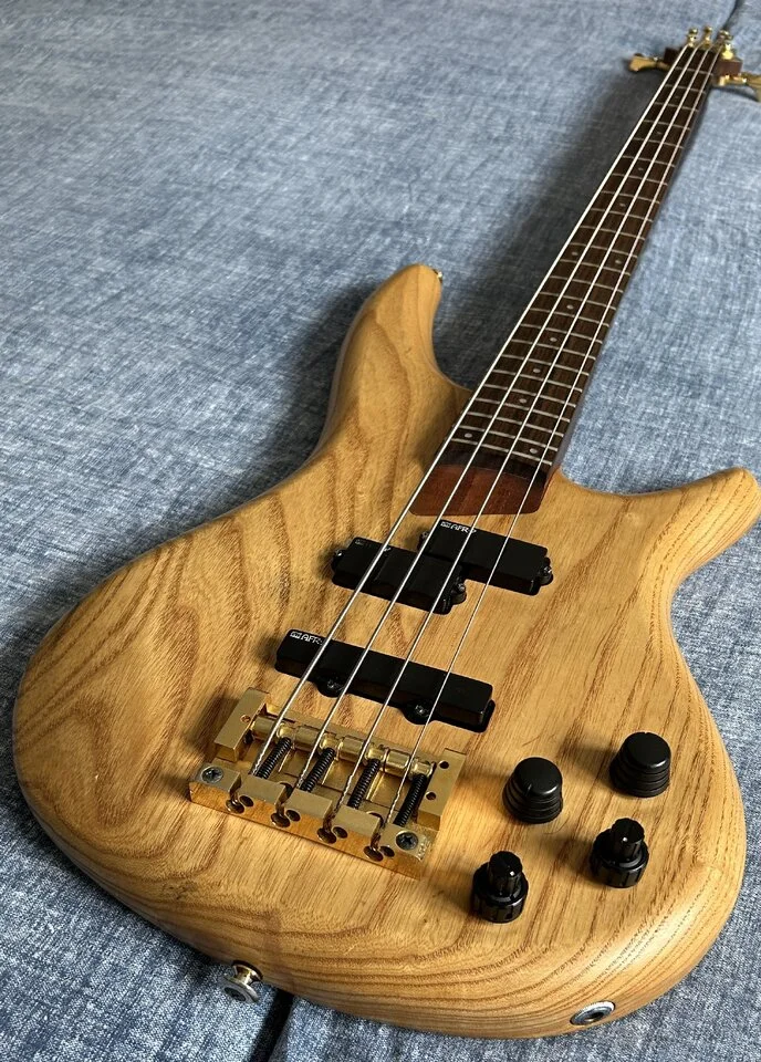 Either way, what we have here is a breathtaking piece of lightweight Japanese ash - two pieces with perfectly defined grains (the contrast isn't bumped up - they really are that distinct). Mahogany Oil (MOL) finish. The typical ultra-thin SR neck is a sandwich of mahogany and bubinga with a rosewood fingerboard with a radius of 12 and pearl dots, medium frets and 24 frets. It's all completed with gold hardware: Gotoh keys and a solid Accu-cast B bridge. The bass is very light - 3.6 kg. The quality is traditional Fujigen, everything is as it should be.