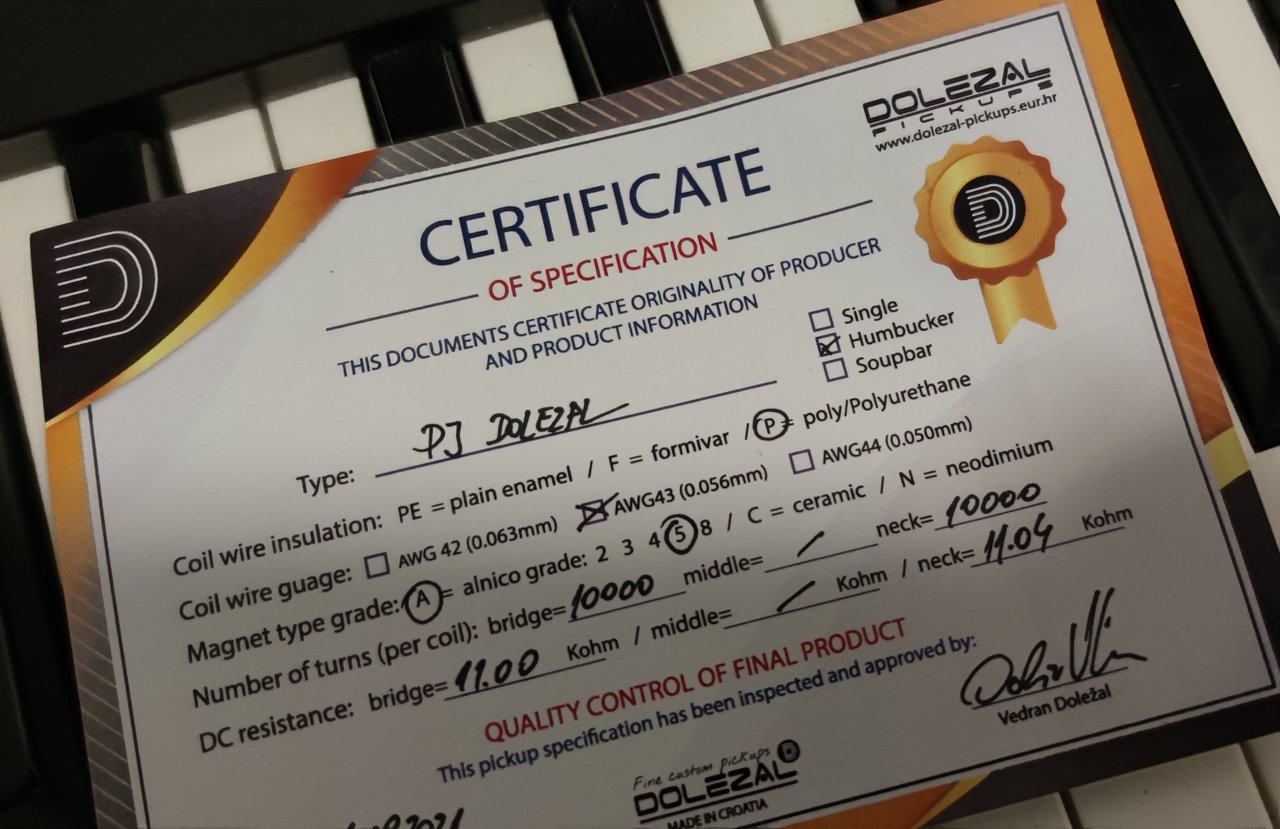 * Dolezal custom shop pickups (alnico, radius, bridge split coil)