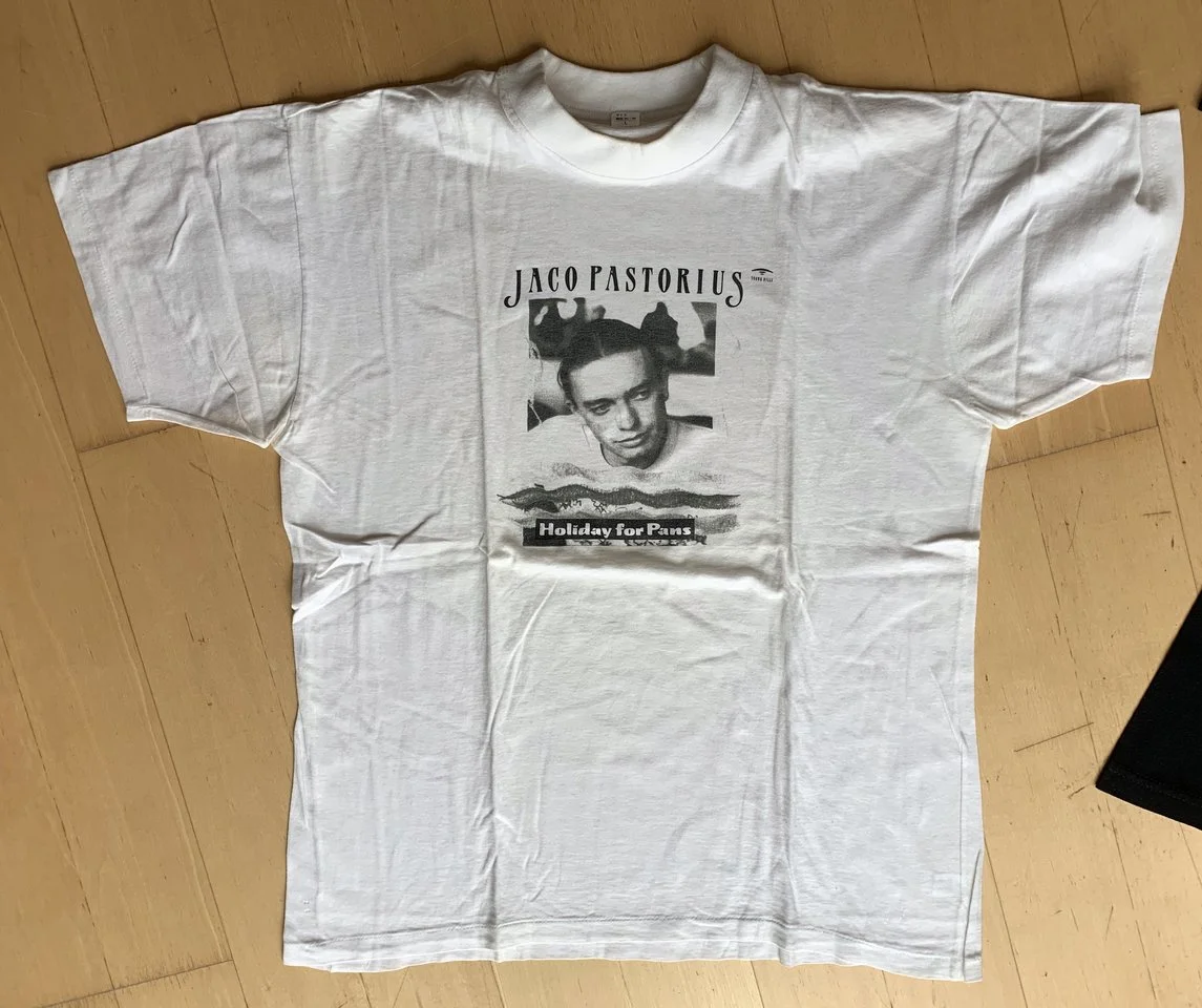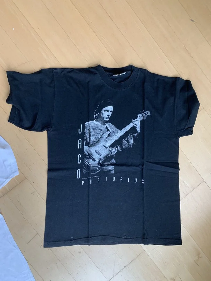 Gebe meine zwei Jaco-Leiberl ab. Das Schwarze habe ich aus NYC....das Weisse war bei einer Jaco-CD-Kassette dabei. Grösse> Large