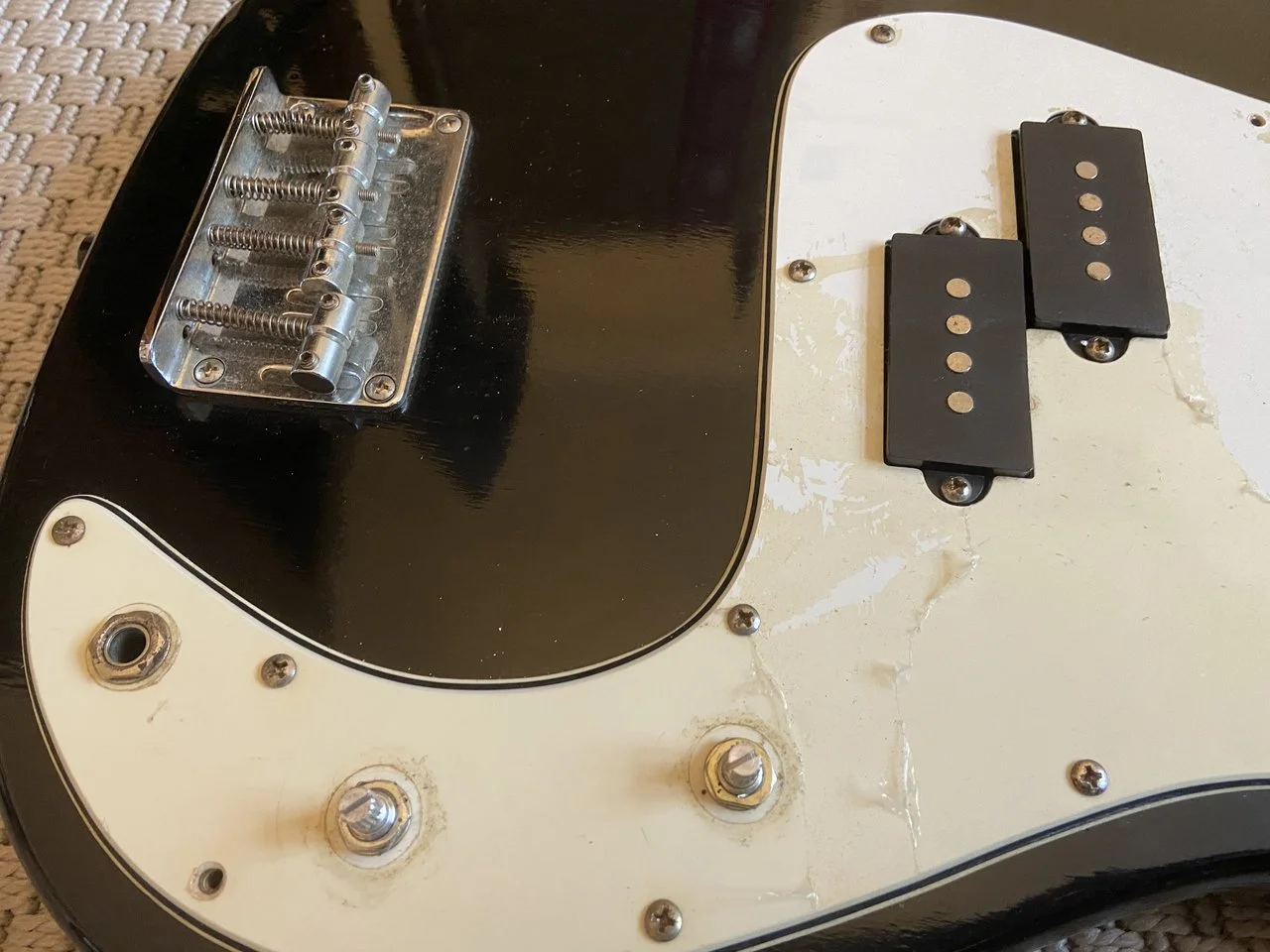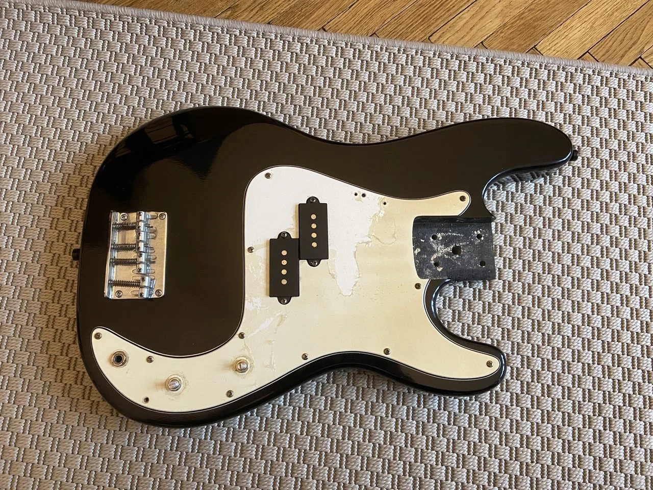 Verkaufe einen sehr gut erhaltenen P-Bass Corpus voll beladen aus den frühen 80ern aus einem Projekt, dass dann doch nicht zustande gekommen ist. Alle Teile sind vollkommen funktionstüchtig, die Verfärbung des Pick Guards kommt von der Folie, die noch drauf ist. Neck Plate ist auch dabei.