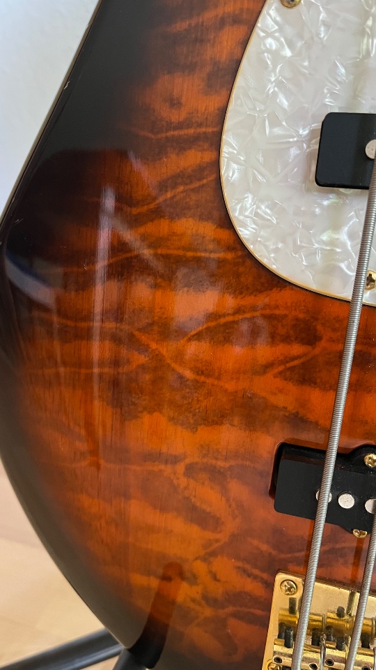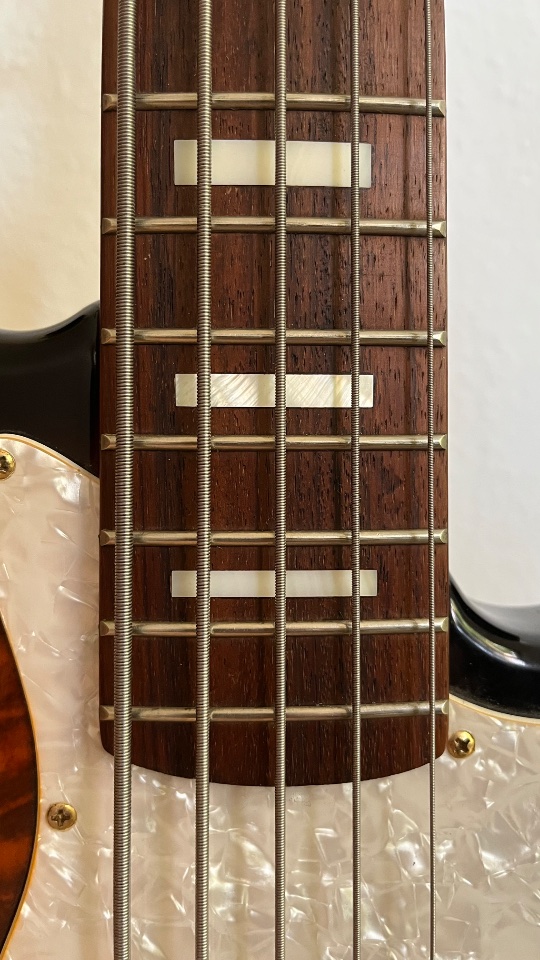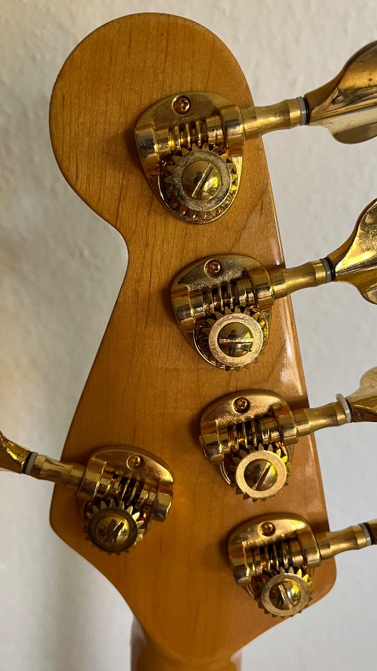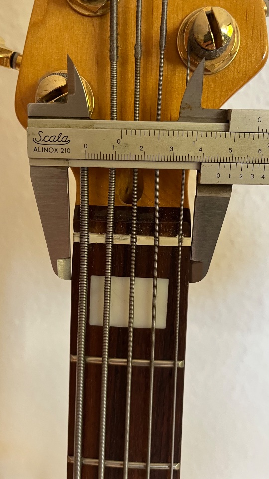 Funktioniert alles tadellos … Pickups (alle Saiten gleich laut), Hals gerade, Halsstab gängig, Potis kratzfrei…der Bass spielt sich durch den etwas schmaleren Hals und die engeren Saitenabstände sehr leicht und gut. Die Maße bitte den Fotos entnehmen. . Ich habe die Saitenabstände durch kleine Unterlegscheiben dennoch etwas verändert (kann zurückgebaut werden).