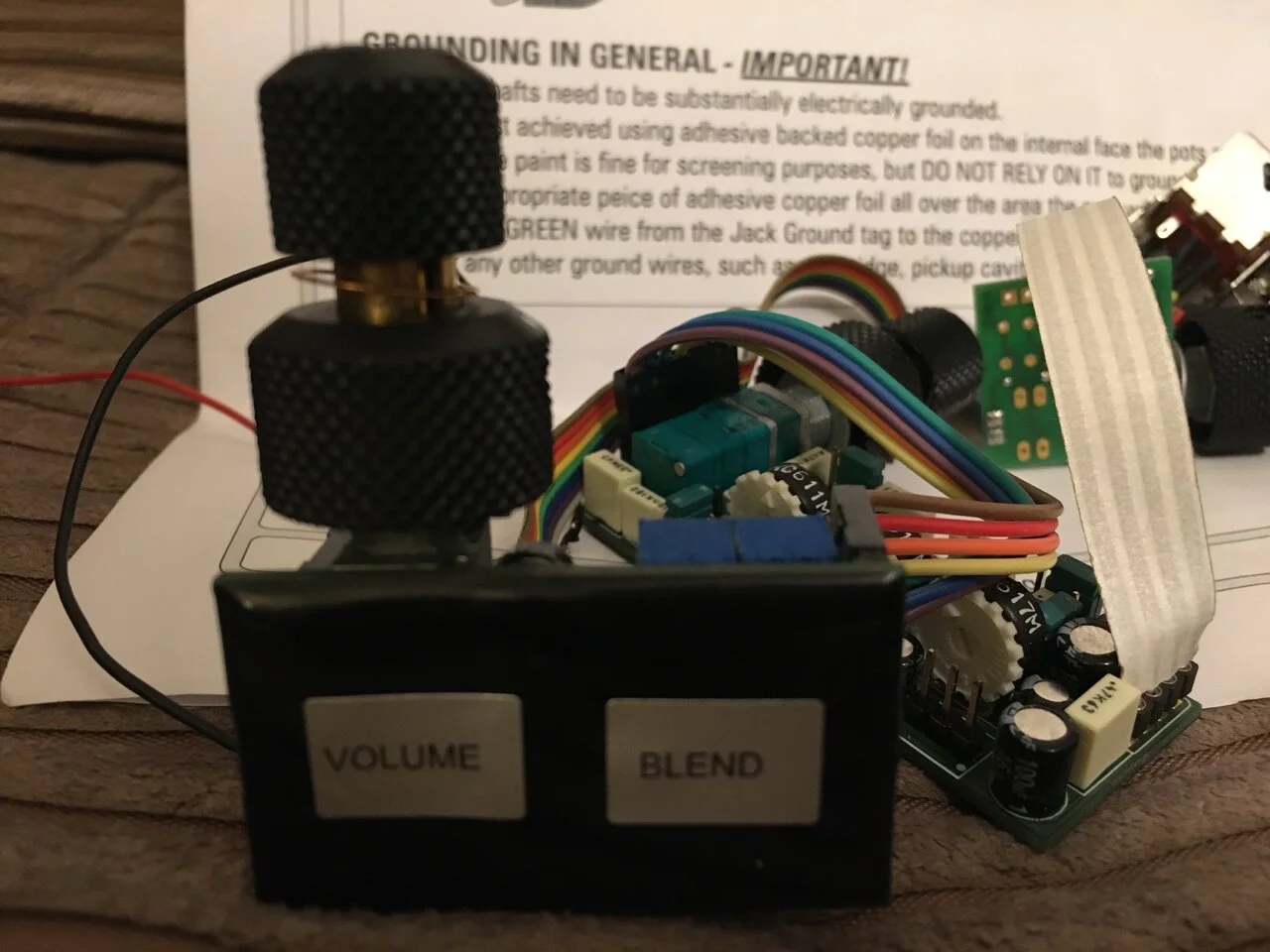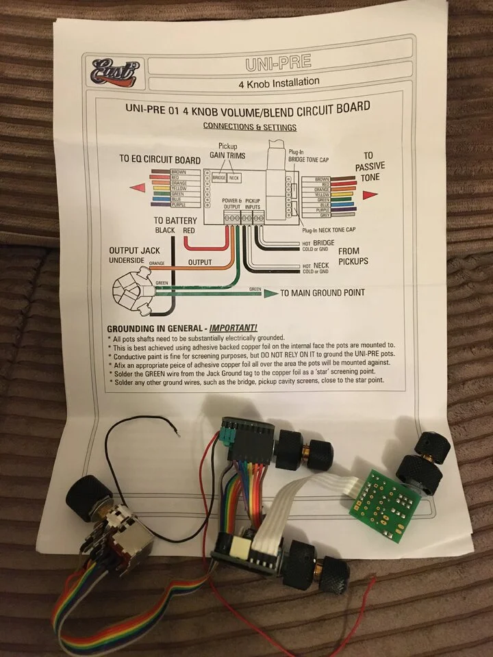 Ich erkaufe meine o.g. Elektronik. Es handelt sich um die Version mit 4 Knöpfen in schwarz mit Volume/Blend/Para-Mid/Bass/Treble-Konfiguration.