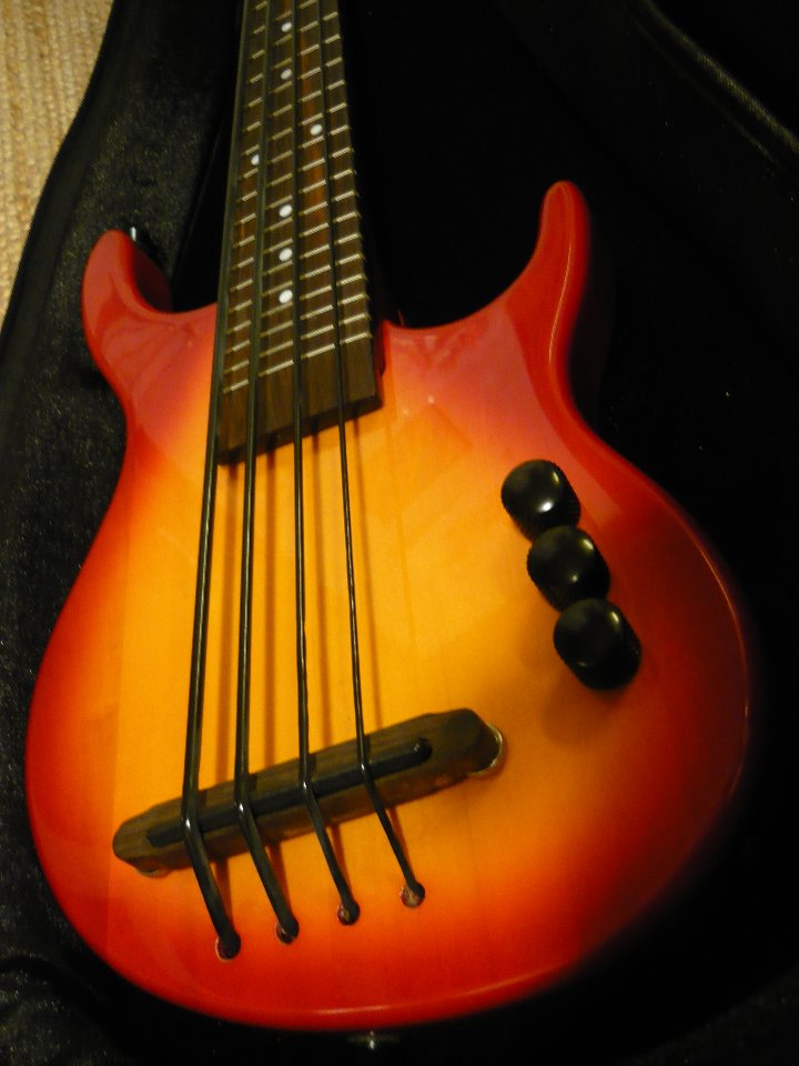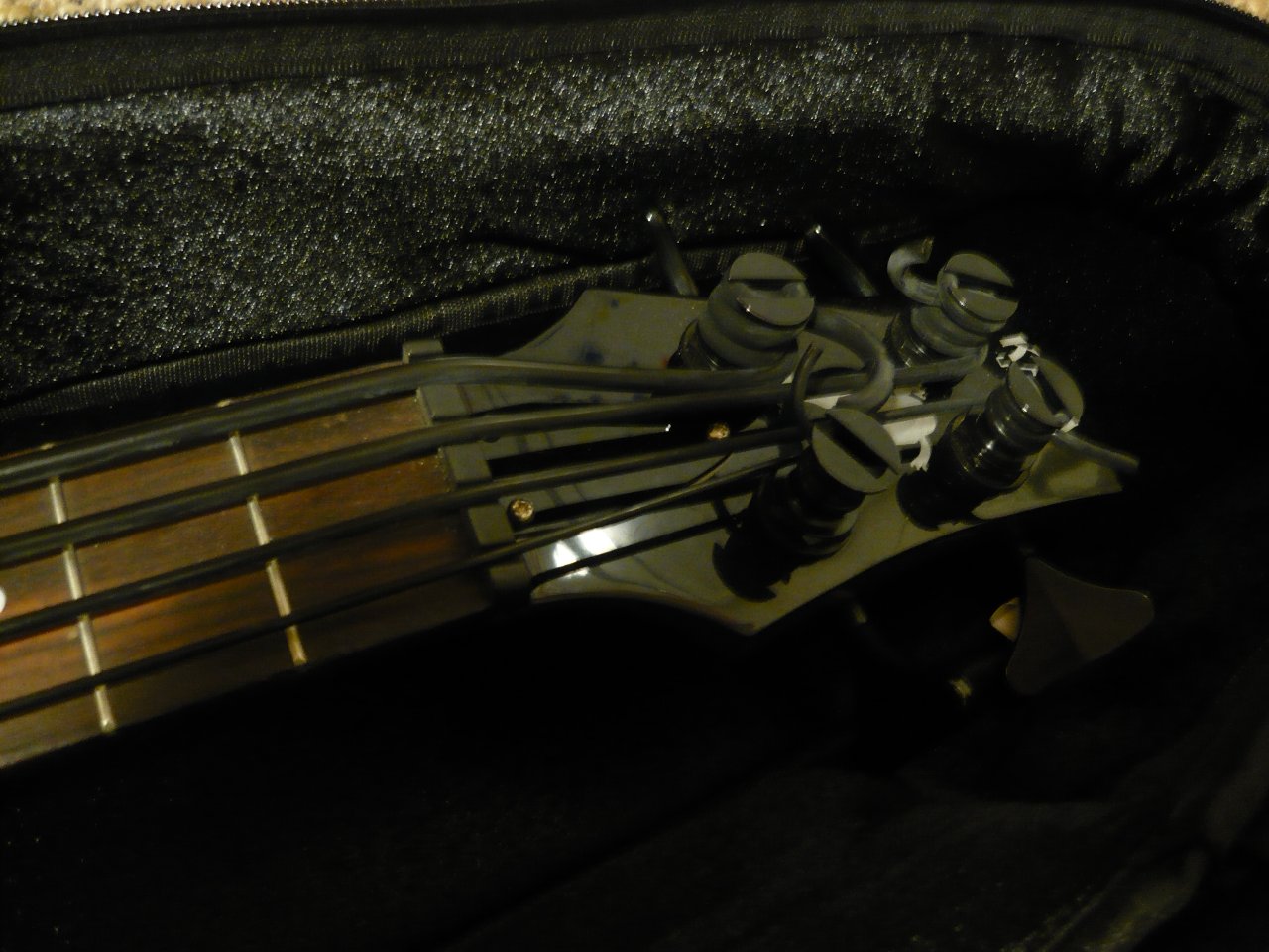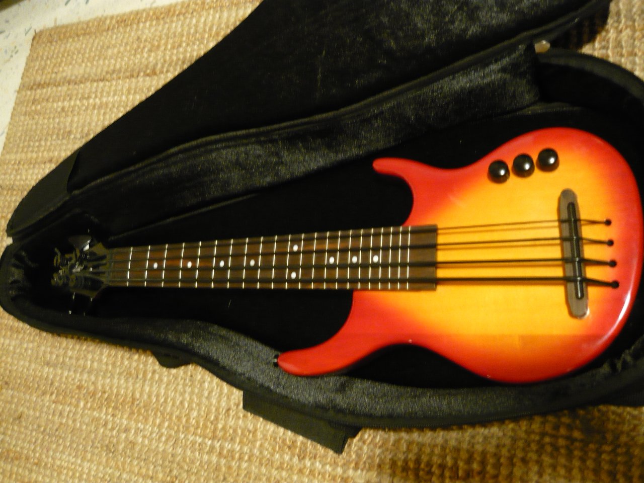 Das originale Gigbag, extra Satz Saiten von Aguilar und Strap.
