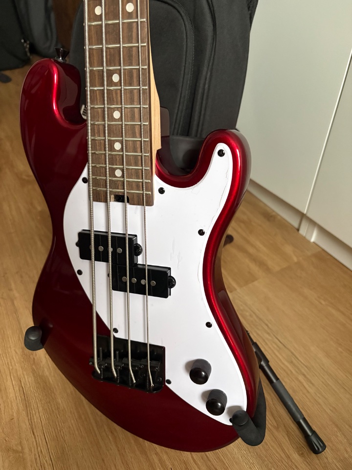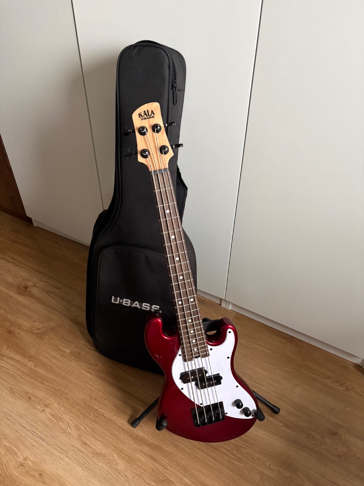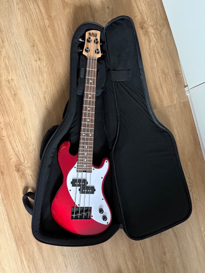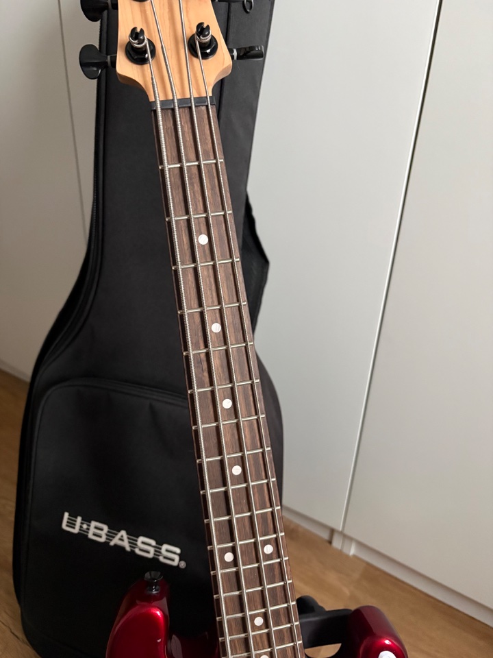 Biete die abgebildete Bassukulele in rot ("candy apple red") an. Das Instrument ist ca. 2 Jahre in meinem Besitz gewesen und wurde nur selten (im Urlaub) verwendet. Das ist auch der Grund, warum wir zukünftig getrennte Wege gehen werden - meine Urlaubspläne außer Haus sehen keine Basszeit vor.