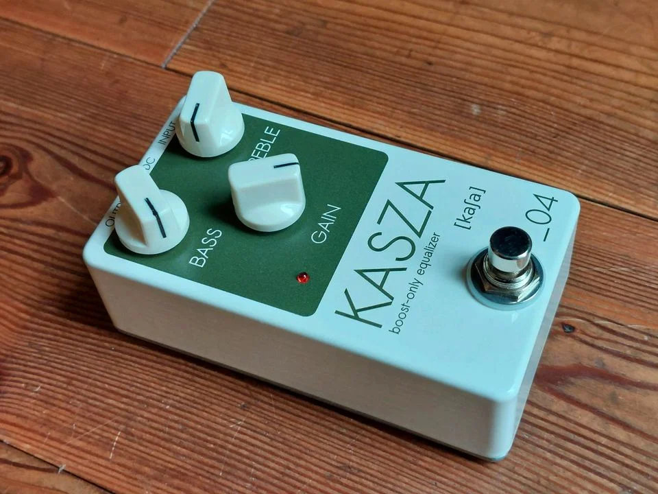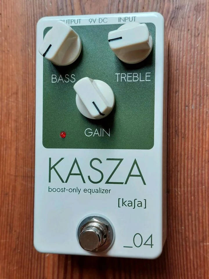 Der Kasza [kaʃa] ist ein zwei Band boost-only Equalizer. Die Schaltung besteht aus zwei Class-A J-FET Stufen; Kombiniert mit dem passiv Tonestack ist die Schaltung ein Garant für einen warmen, plastischen Sound.
