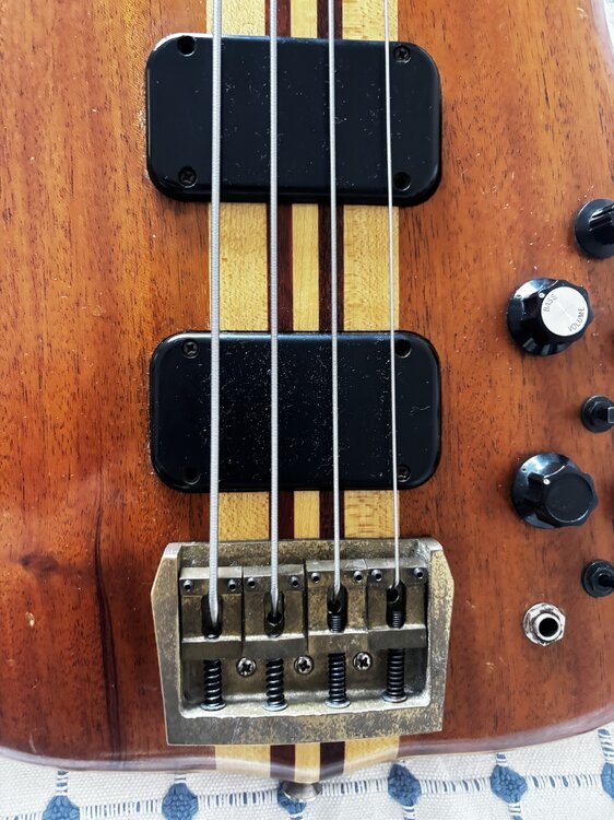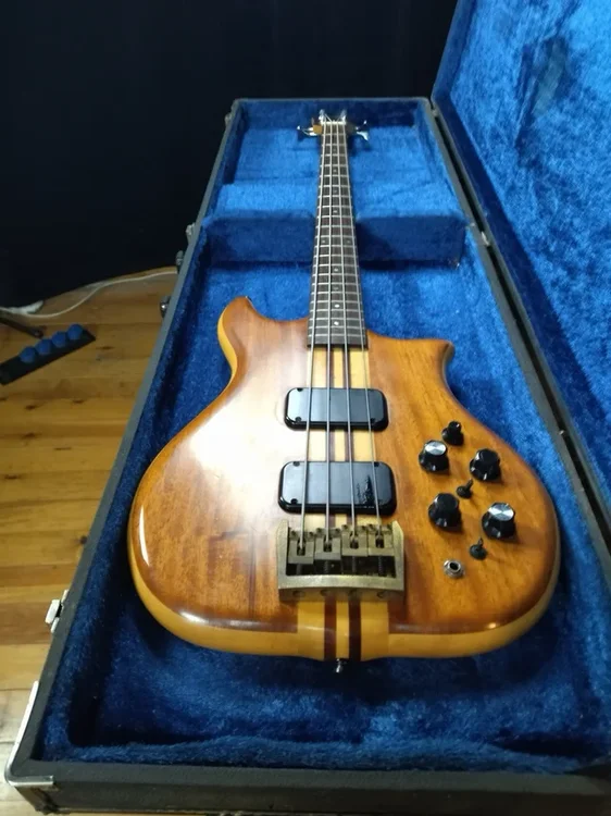 "neck-through" Ahorn/Mahagoni, Korpusflügel aus Ahorn/Koa sowie eine aktive Elektronik, inklusive des für die frühen F-II B-Modelle einzigartigen Vierwege-Drehschalters für die Tonabnehmer.
